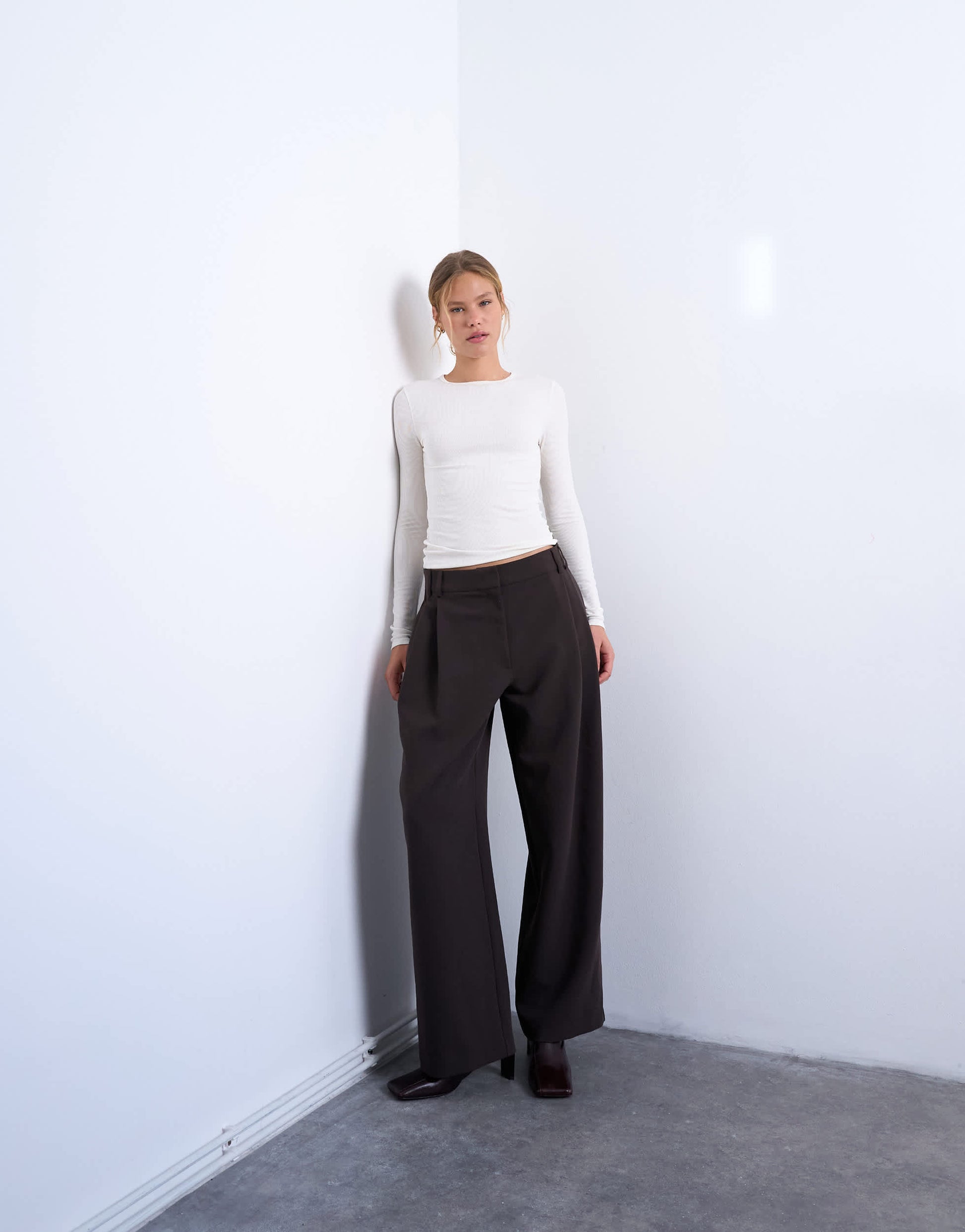 Hauts de TopshopCe top est confectionné en jersey doux et extensible à côtes, de couleur écru. Il présente un col rond, des manches longues et une coupe ajustée.