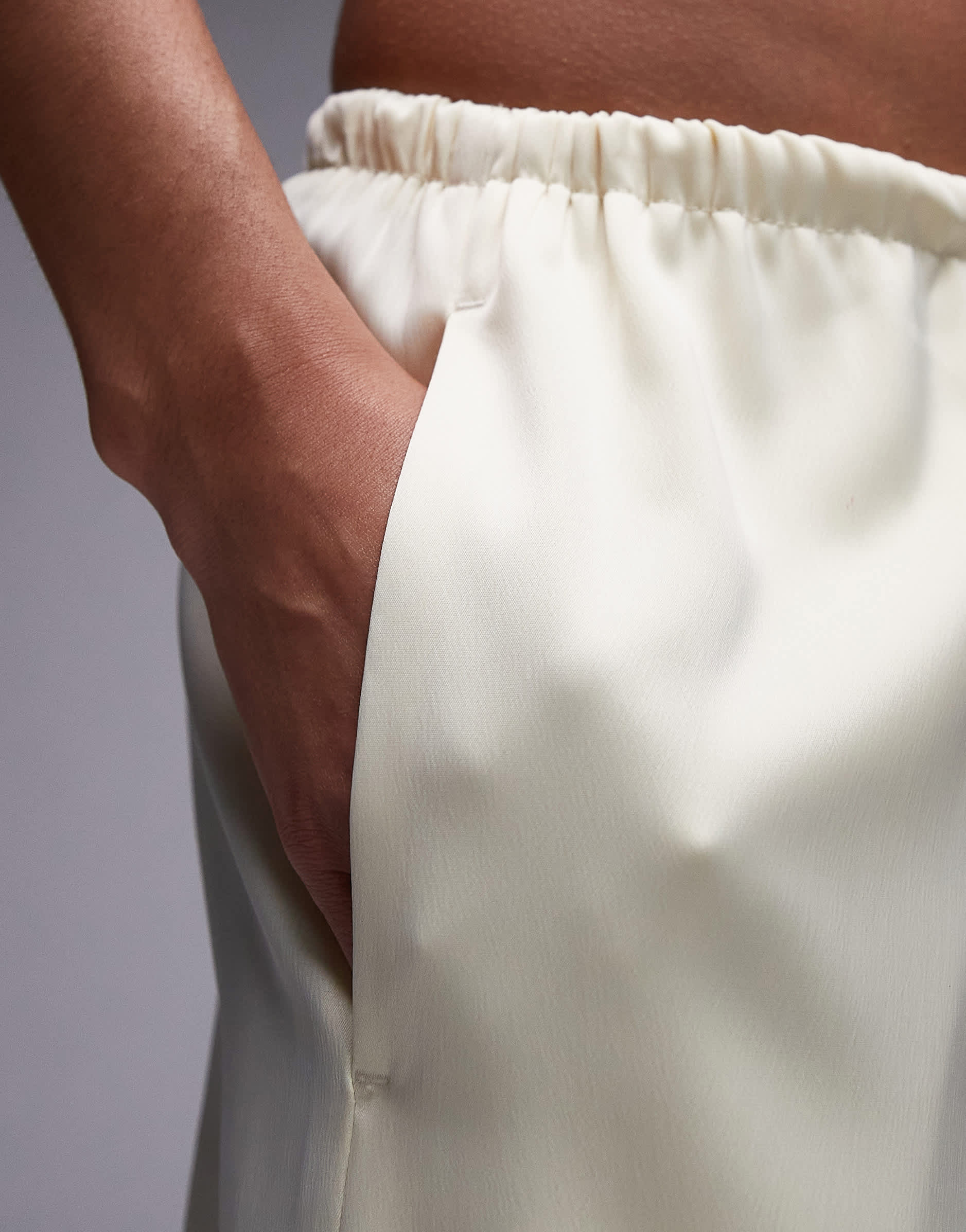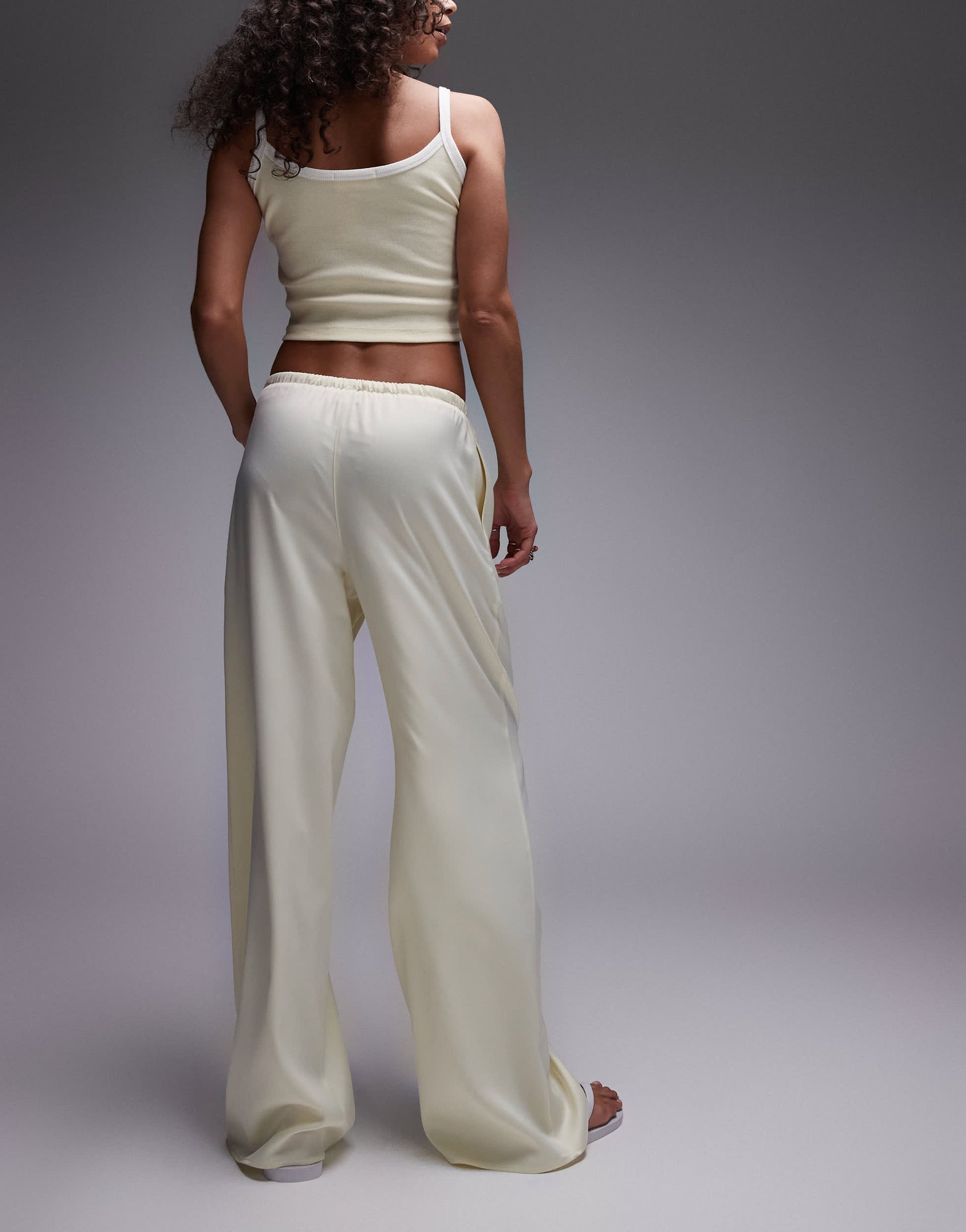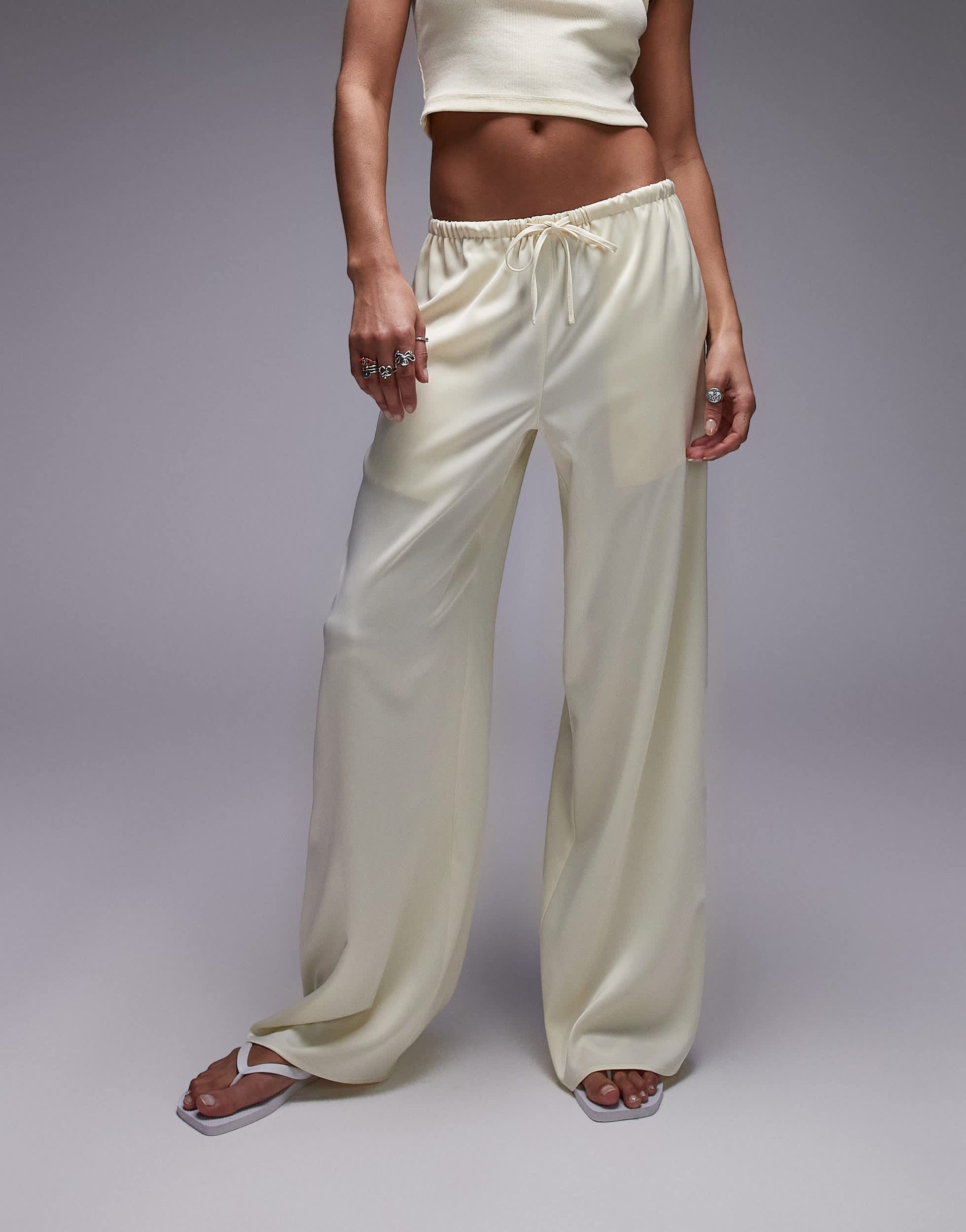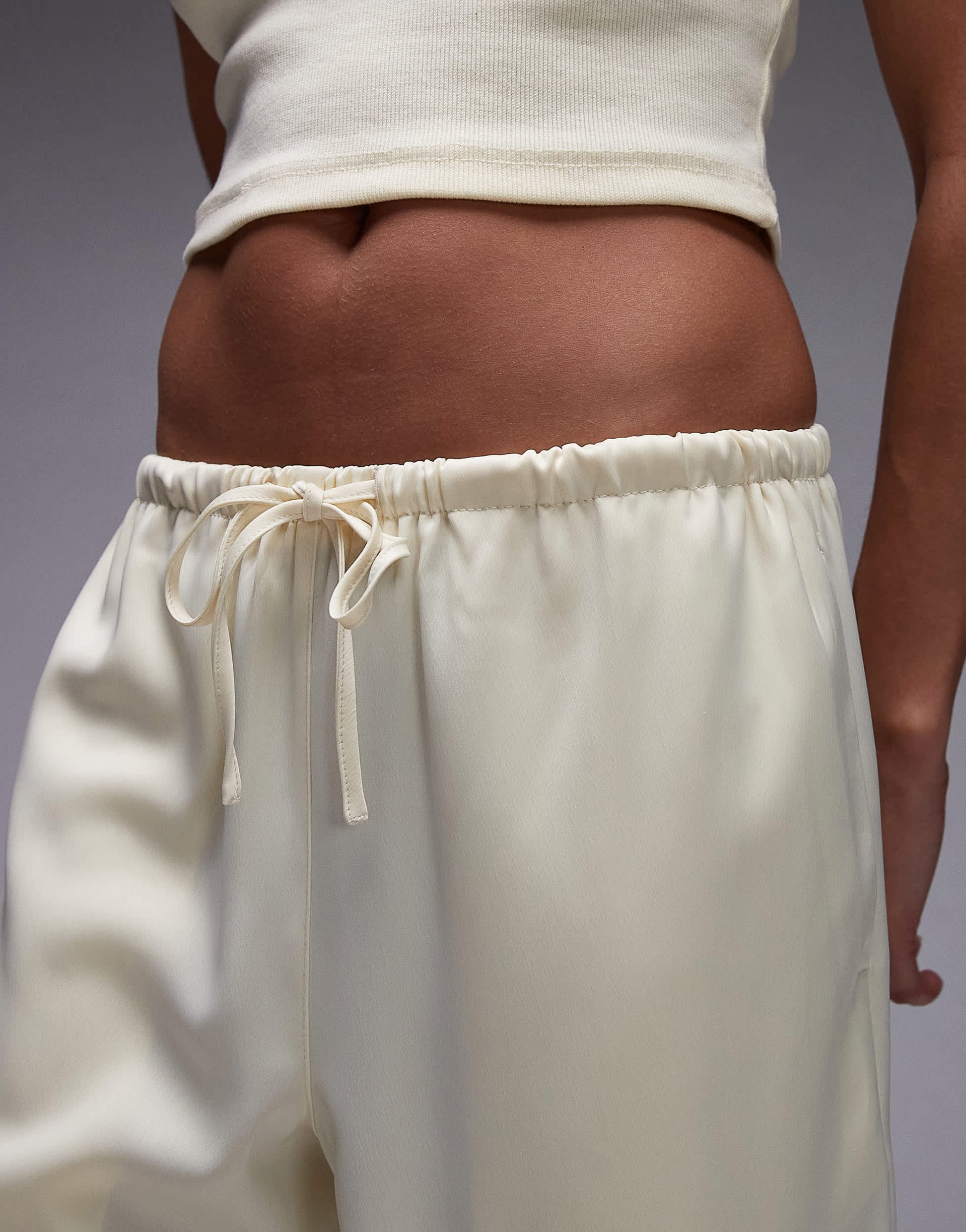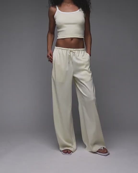Pantalon large Topshop en satin couleur babeurre, taille nouée