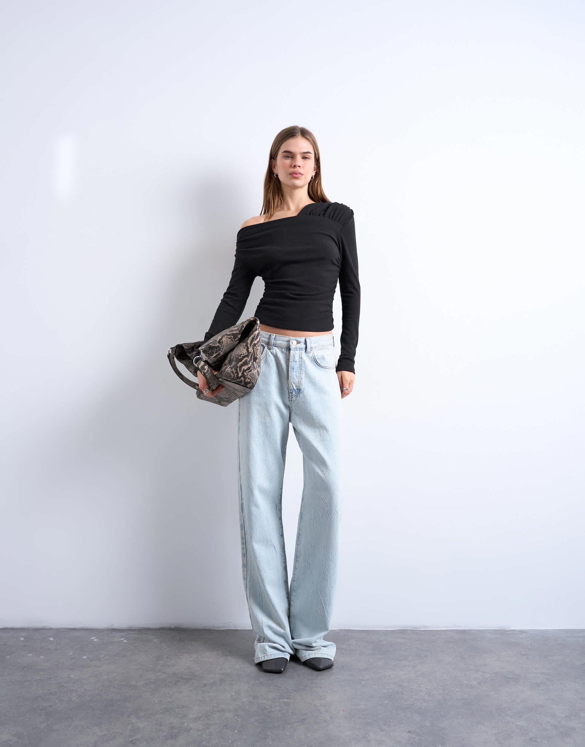 Hauts de TopshopCe top est confectionné en jersey doux couleur chocolat. Il présente une encolure asymétrique, des fronces et des manches longues. Sa coupe ajustée met en valeur la silhouette.