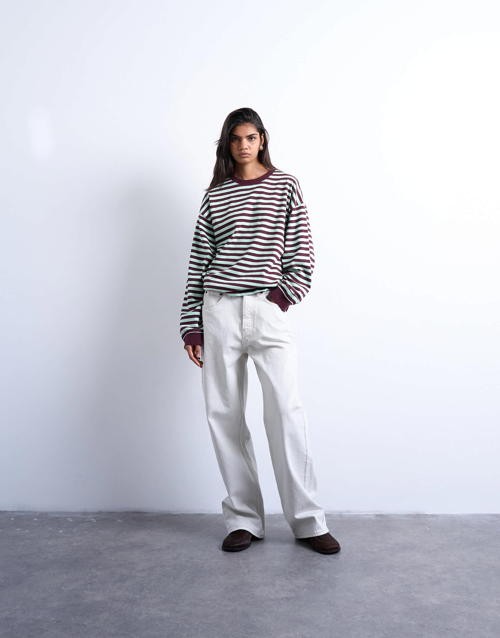 Hauts de TopshopCe t-shirt à col rond et manches longues arbore un imprimé rayé. Sa coupe est décontractée, de style skater.