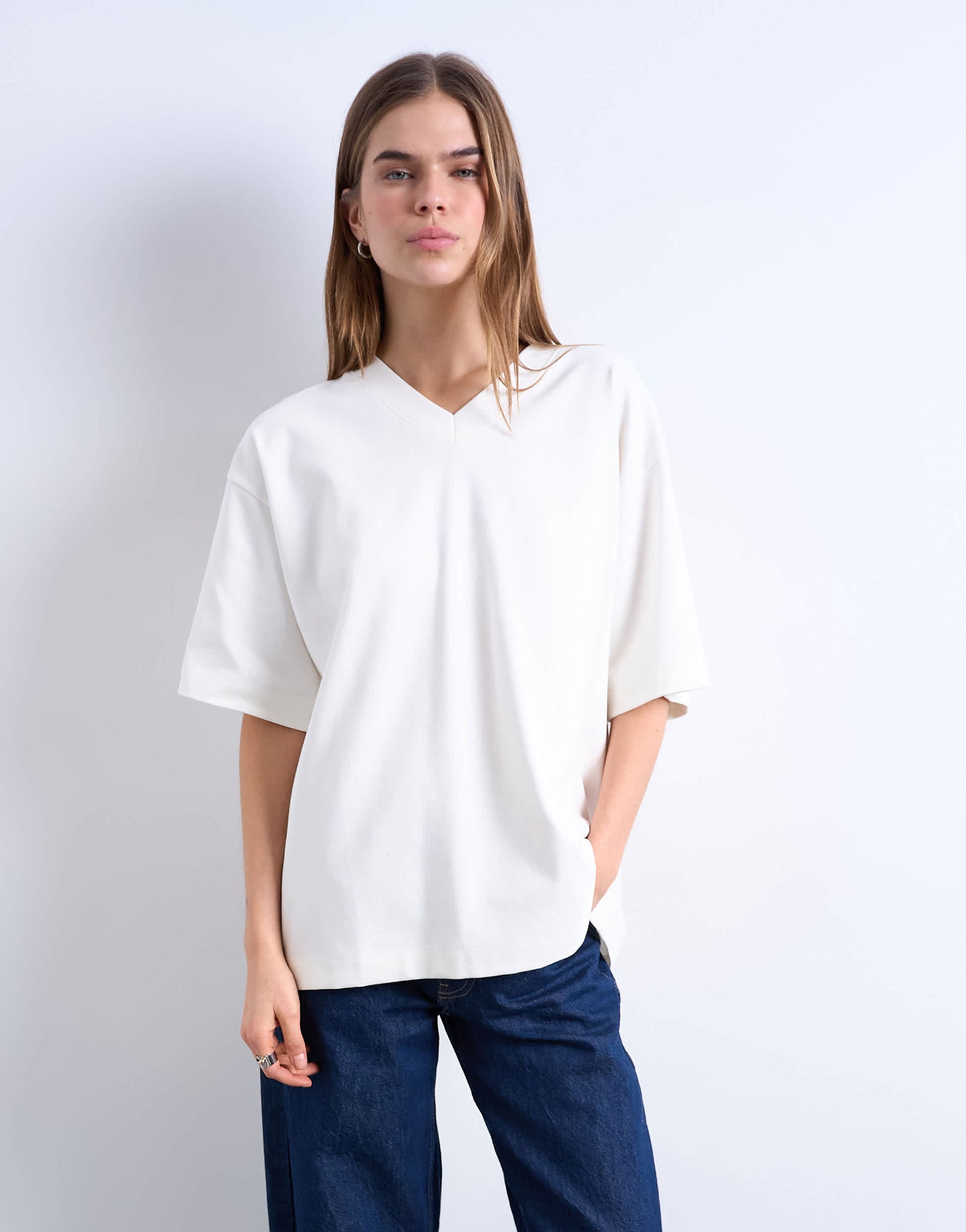 Hauts de TopshopCe t-shirt facile à enfiler possède un col en V, des manches courtes et un design uni et polyvalent. Sa coupe décontractée lui confère un style casual.