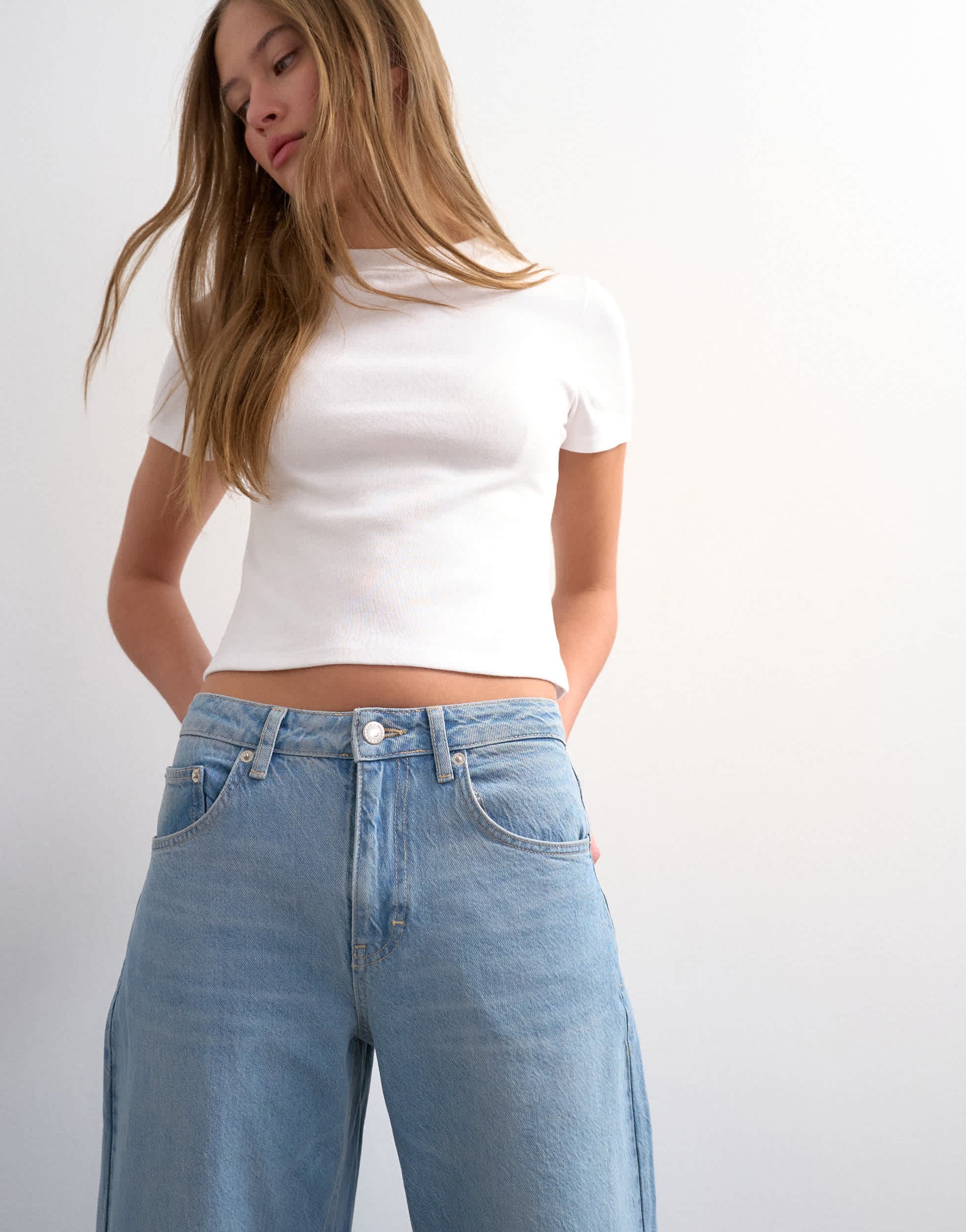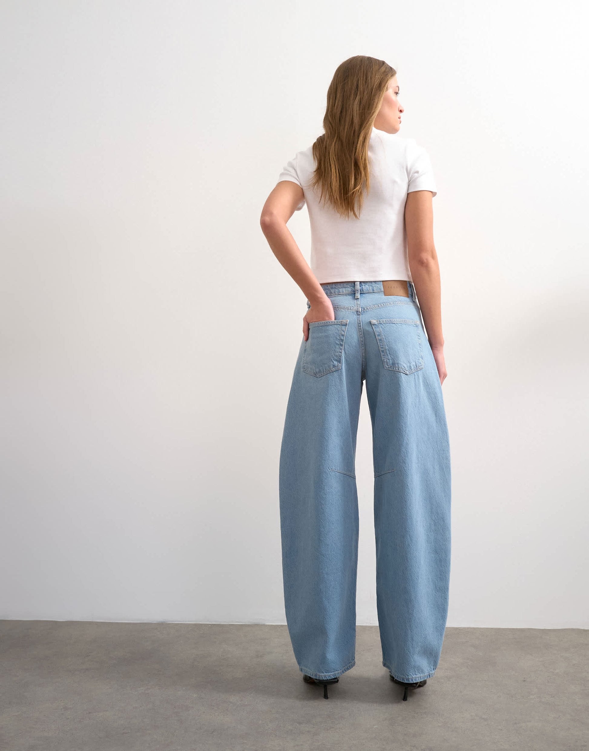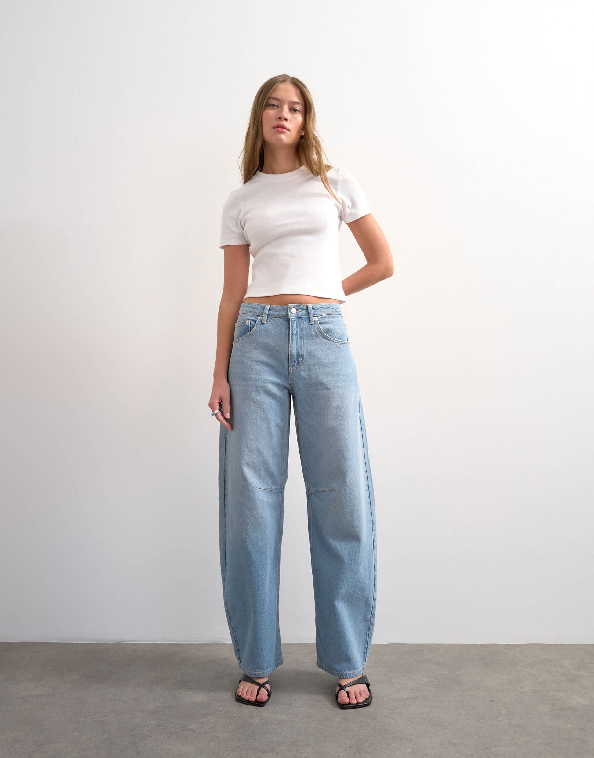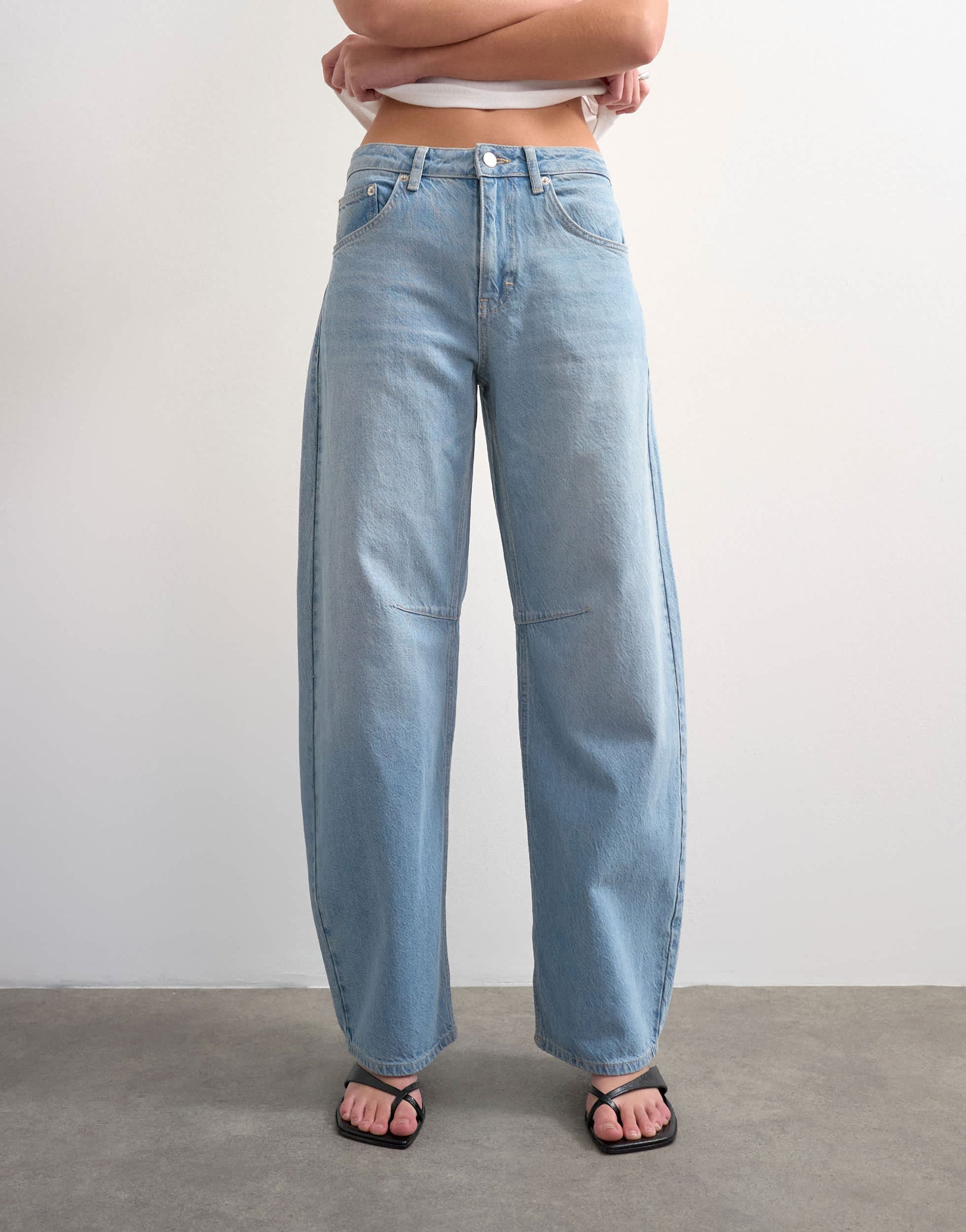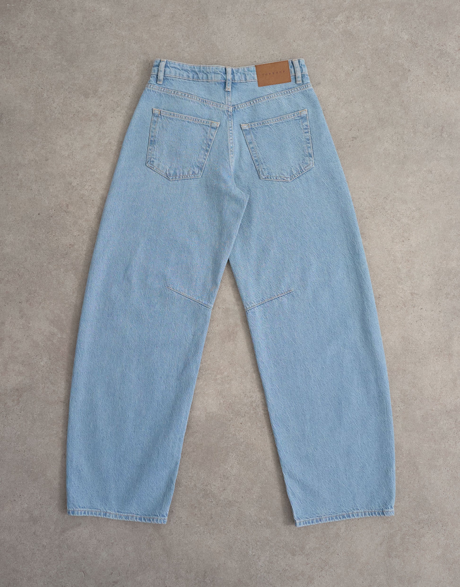 Jeans by TopshopThe Barrel jeans are cut with a mid-rise waist and a loose-fit leg that tapers at the ankle. Featuring a zip fly, five pockets and belt loops, this style is crafted from non-stretch denim for a classic feel in a bleach-blue wash.