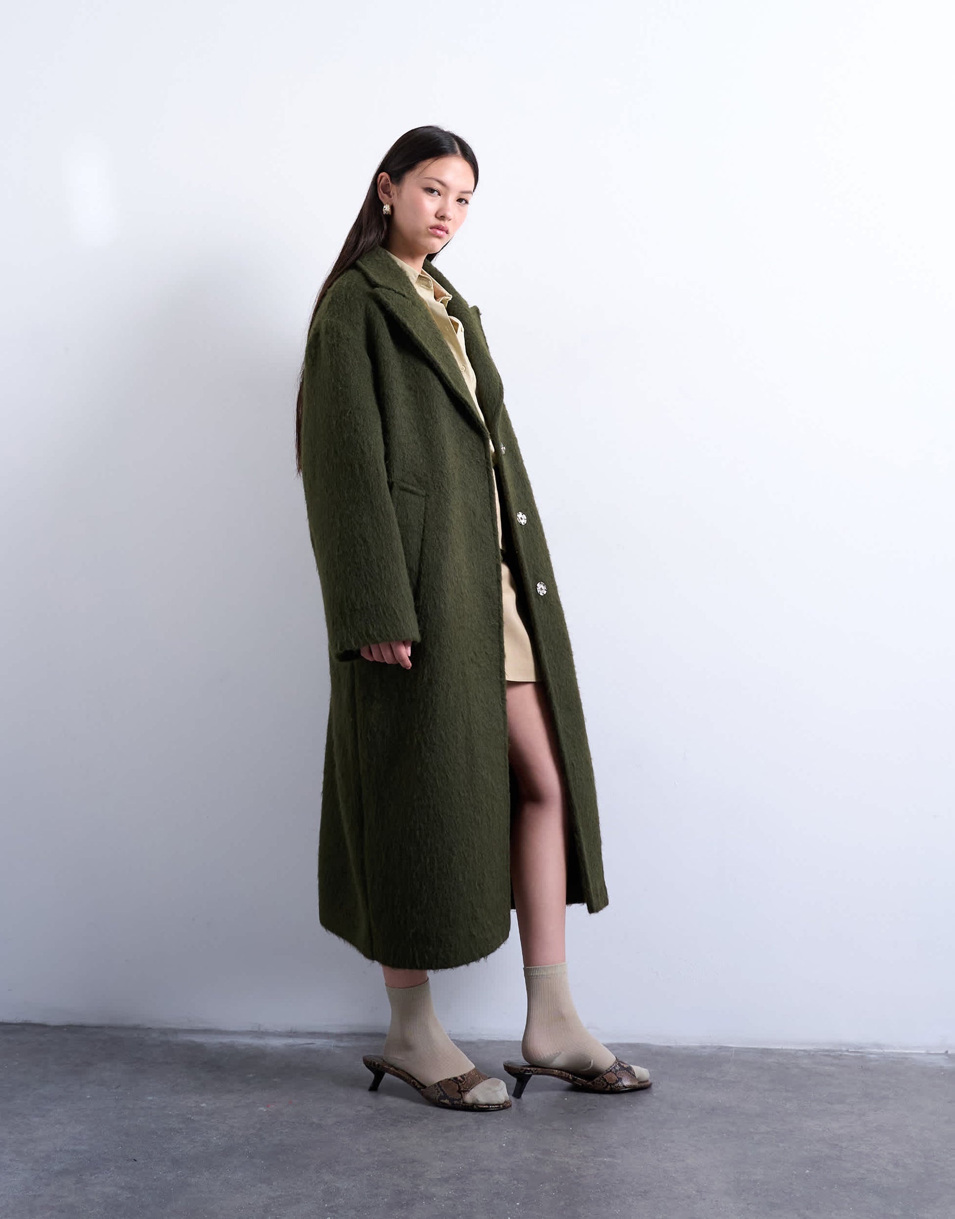 Coats & Jackets by TopshopThis longline coat is crafted from a soft, woven fabric. It features a notch collar, button placket, dropped shoulders, side pockets and is cut with a regular fit.