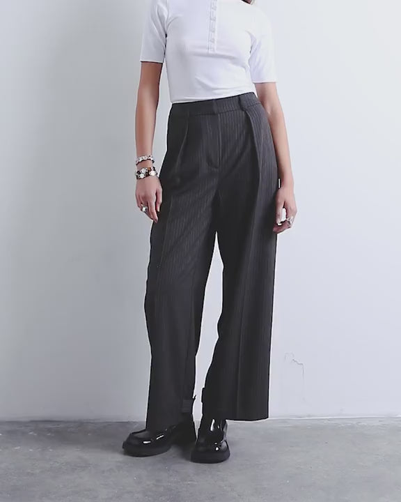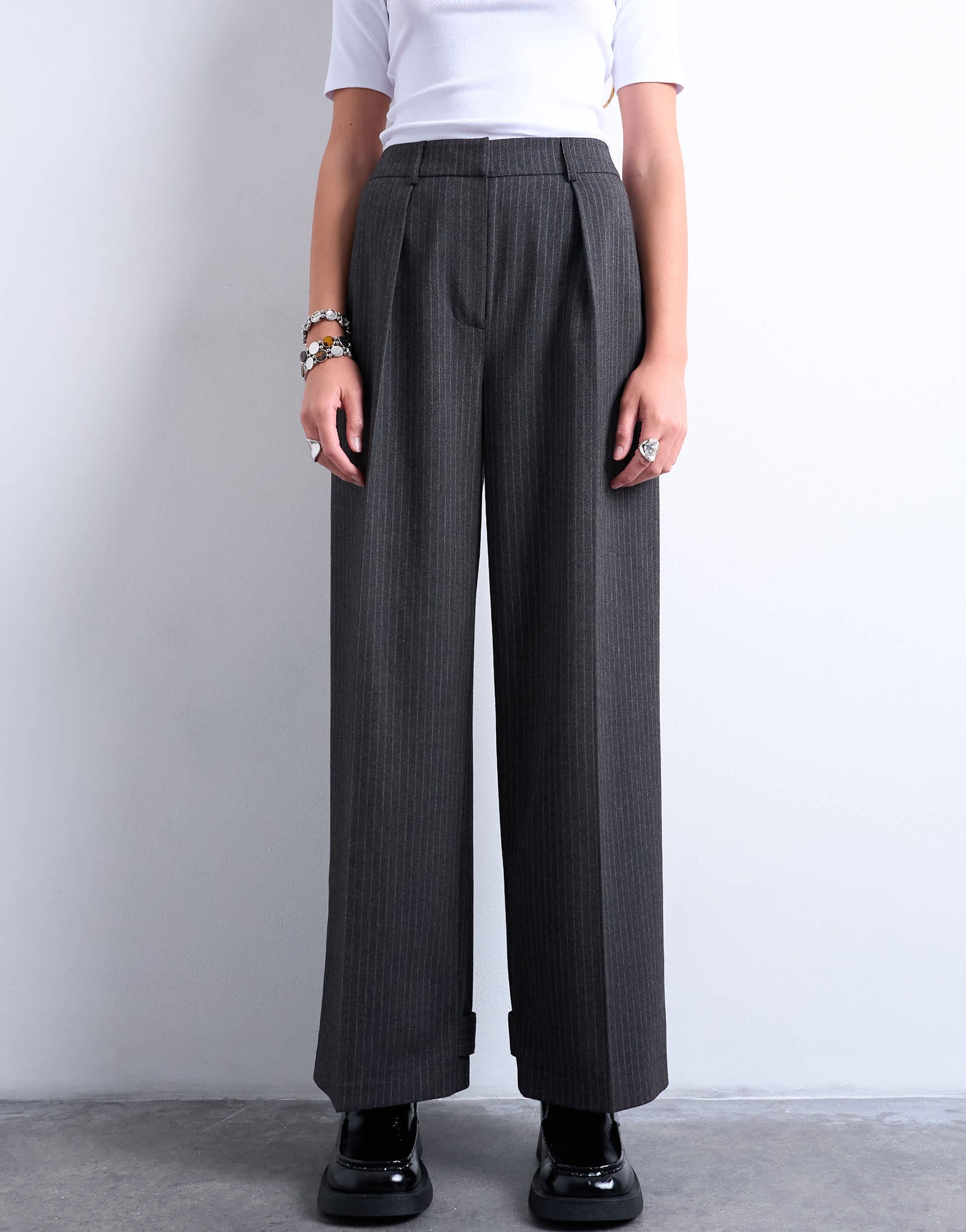 Trousers & Leggings by TopshopThese trousers are crafted out of a textured woven fabric in a pinstripe design. Finished with belt loops, functional pockets and a concealed fly, they are cut to a wide leg for a relaxed feel.