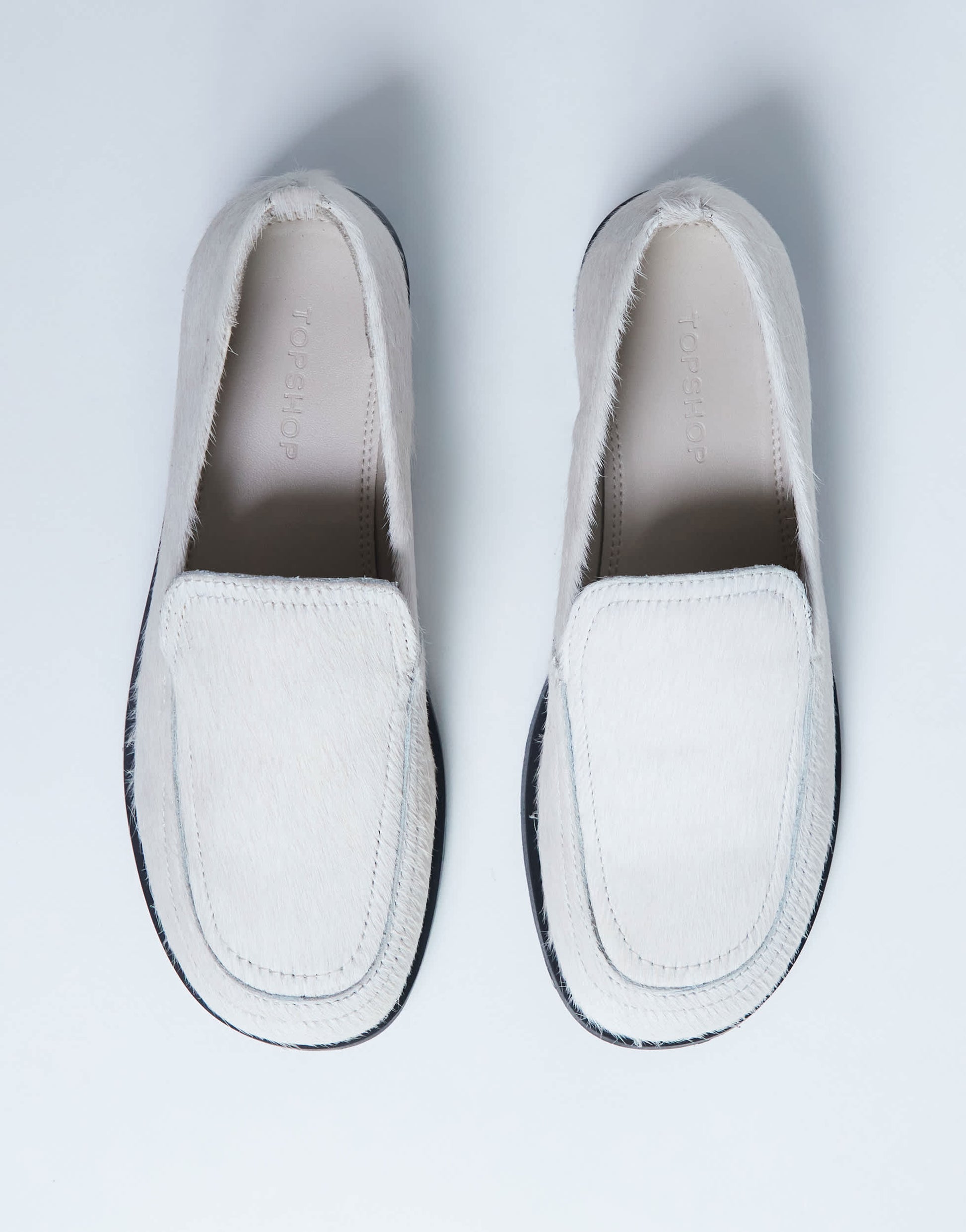 Shoes by TopshopThe Corrie loafers are crafted from a soft, textured fabric. This slip-on style features a round toe and a low block heel.