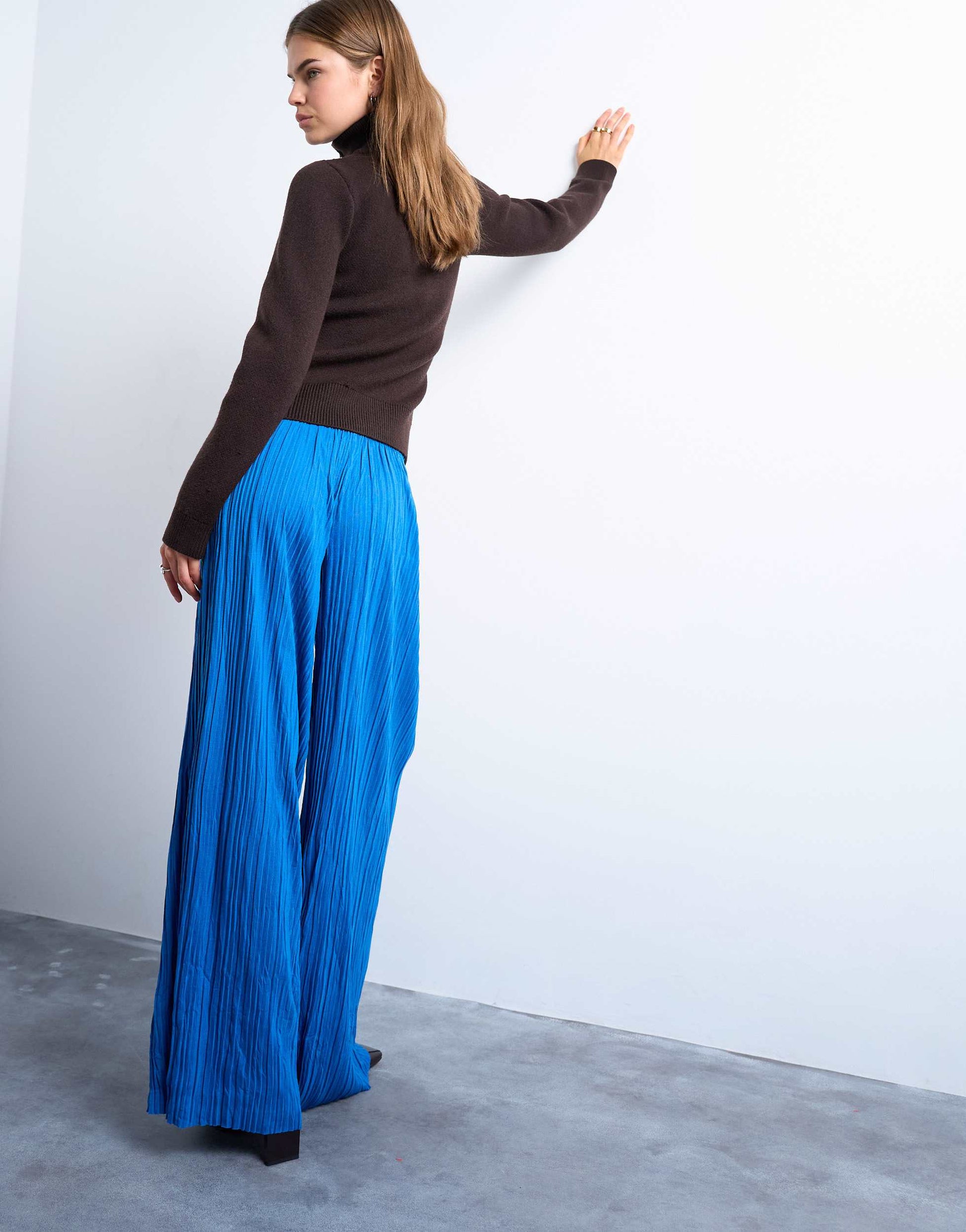 Trousers & Leggings by TopshopThese trousers are crafted from soft, stretchy jersey with a crinkled texture. This style features a mid rise, elasticated waist and is cut with a wide leg.