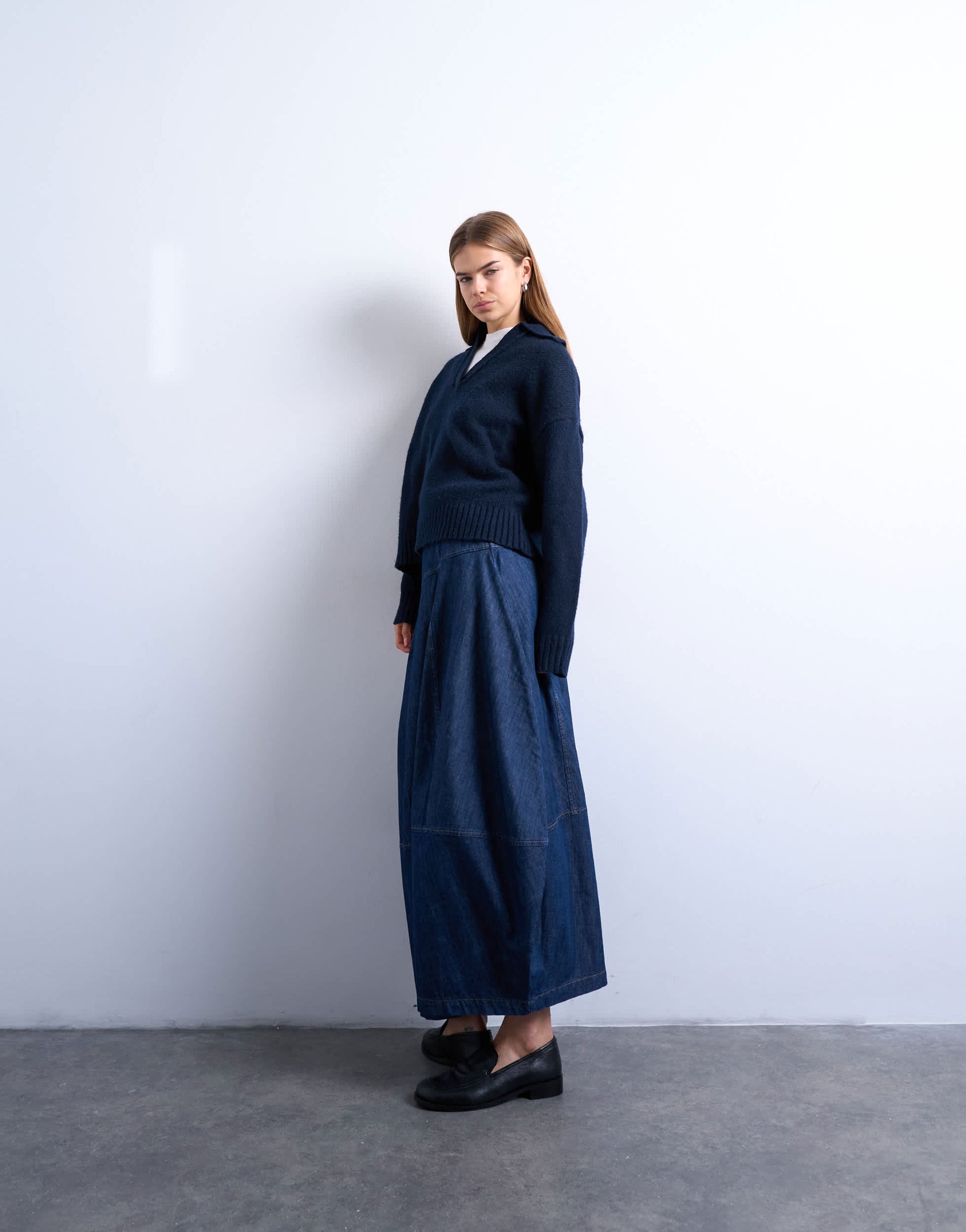 Skirts by TopshopThis skirt is crafted from a non-stretch denim in a dark blue wash. It feature a high-rise waist, zip fastening and is cut to a barrel fit.