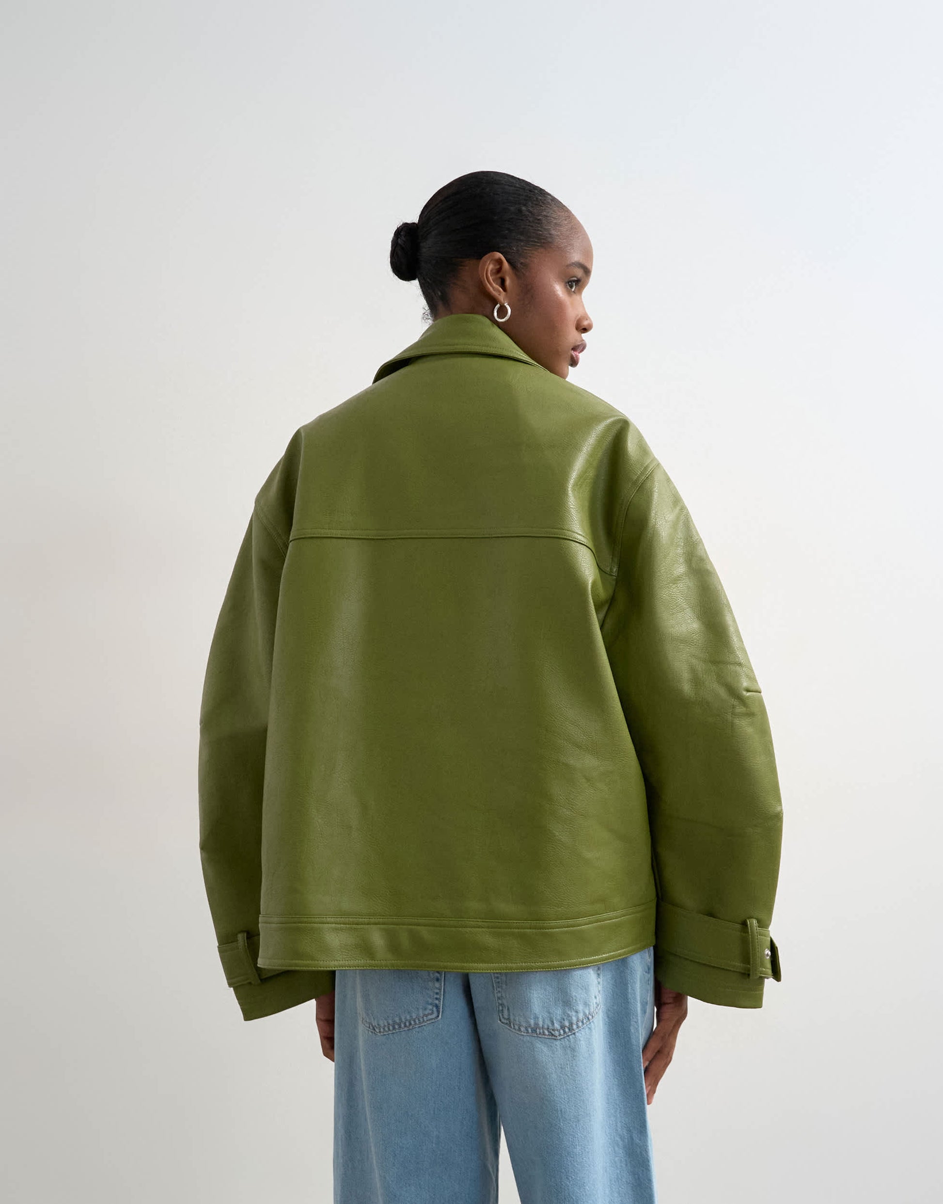 Coats & Jackets by TopshopThis jacket is crafted from lightly textured fabric in a green shade. It features a funnel neck, asymmetric zip fastening and two side pockets. It is cut to a relaxed fit.