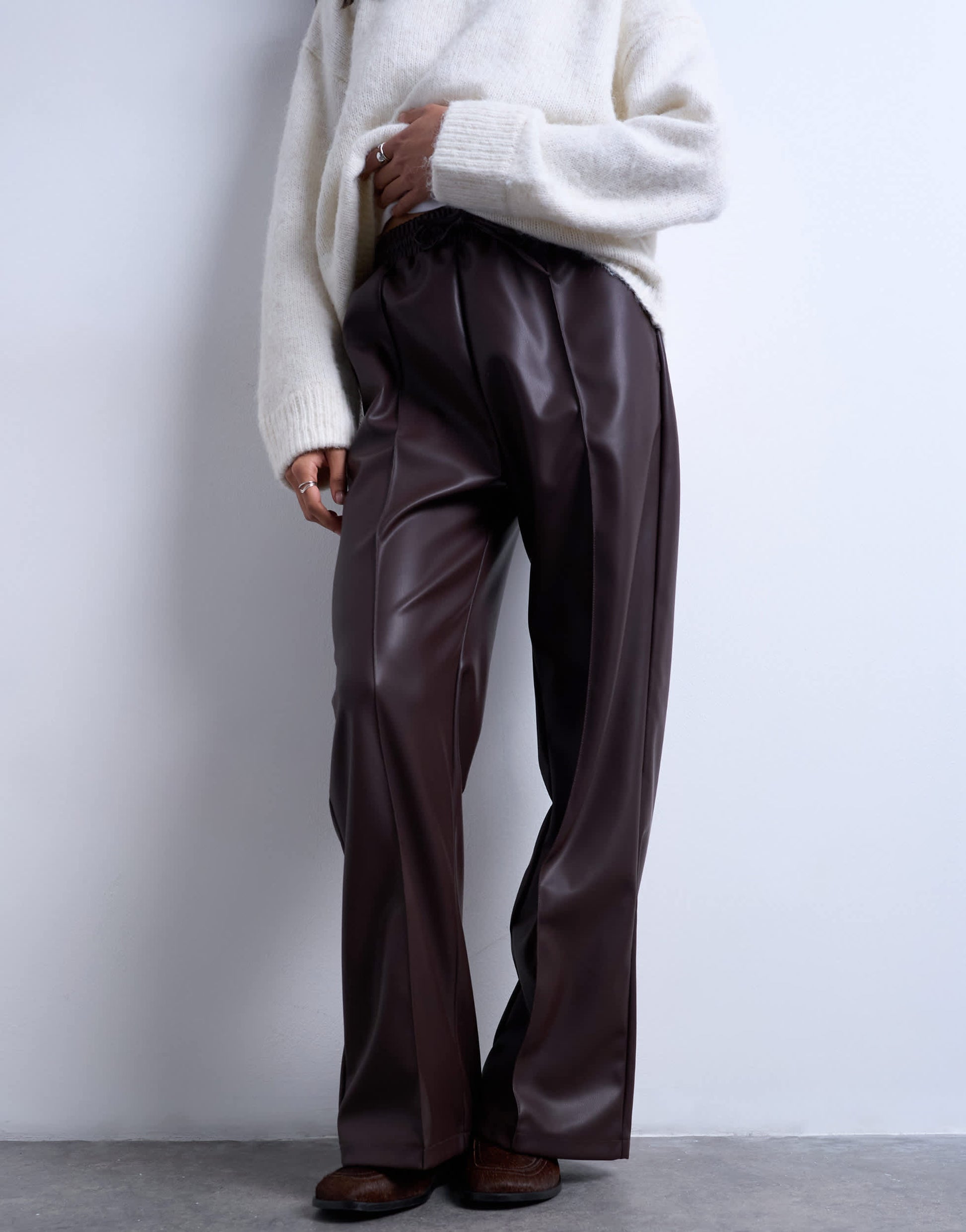 Trousers & Leggings by TopshopWith a smooth, matte finish, these trousers feature a high-rise drawstring waist, two pockets and a wide-cut leg.