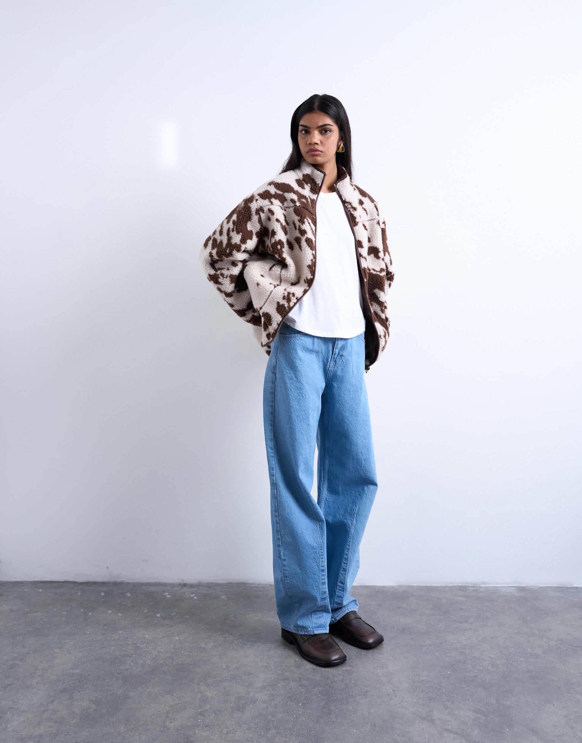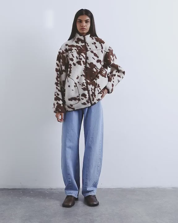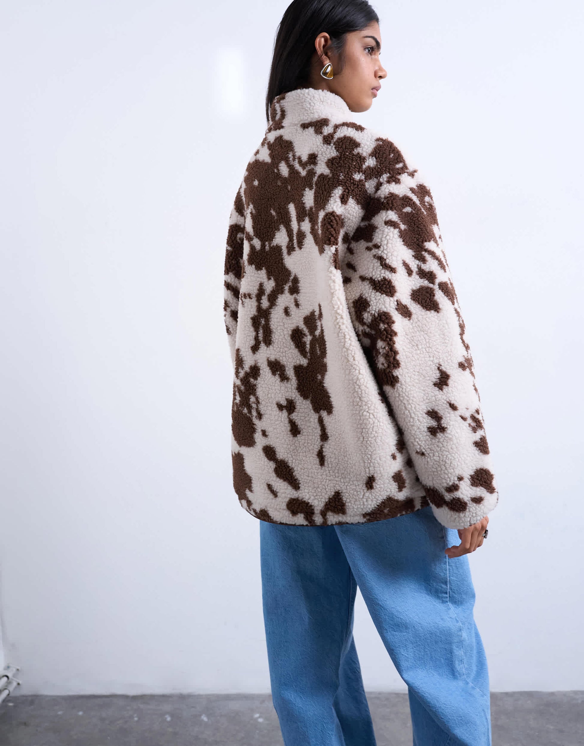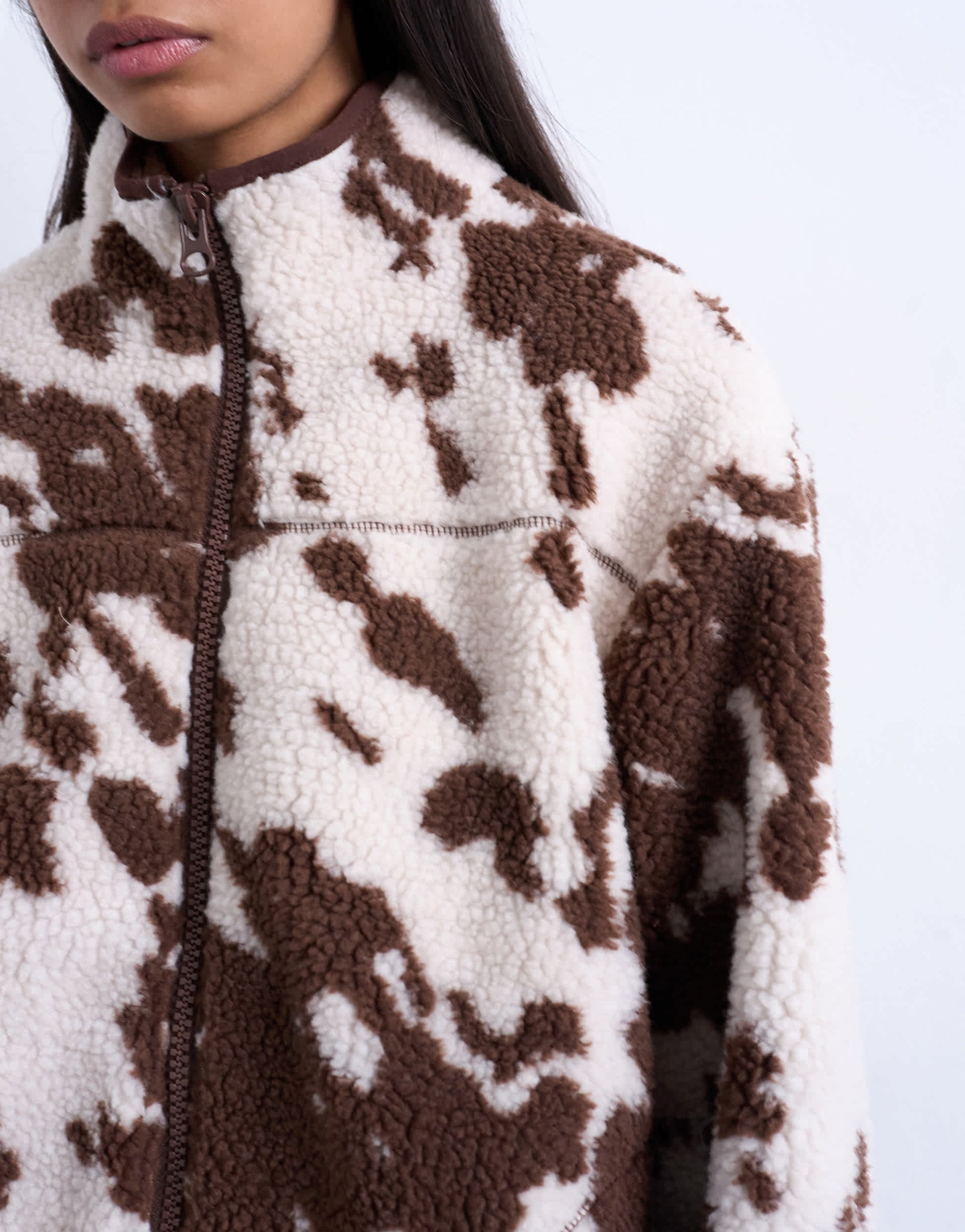 In a statement cow print, this fleece features a high collar, a zip fastening and two side pockets. It is cut from warm, cosy borg with a relaxed fit.