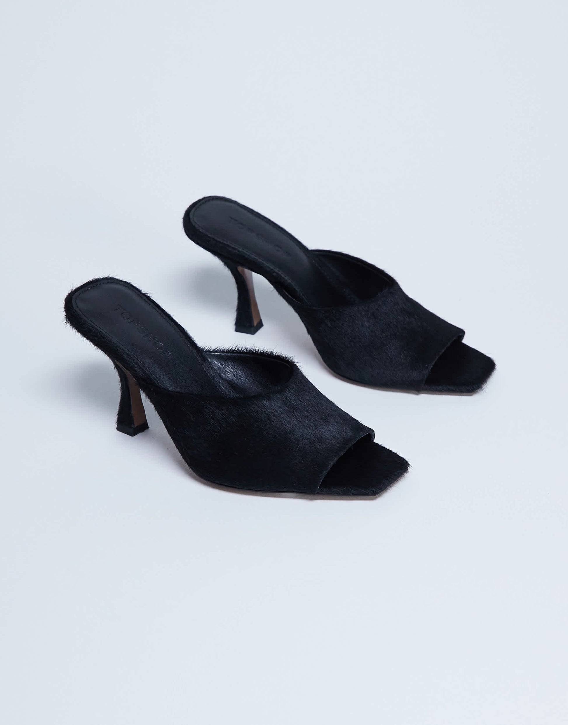Shoes by TopshopThese Fox heels are crafted from a textured fabric and feature a plain design. The slip-on design has an open toe and a mid-point heel.