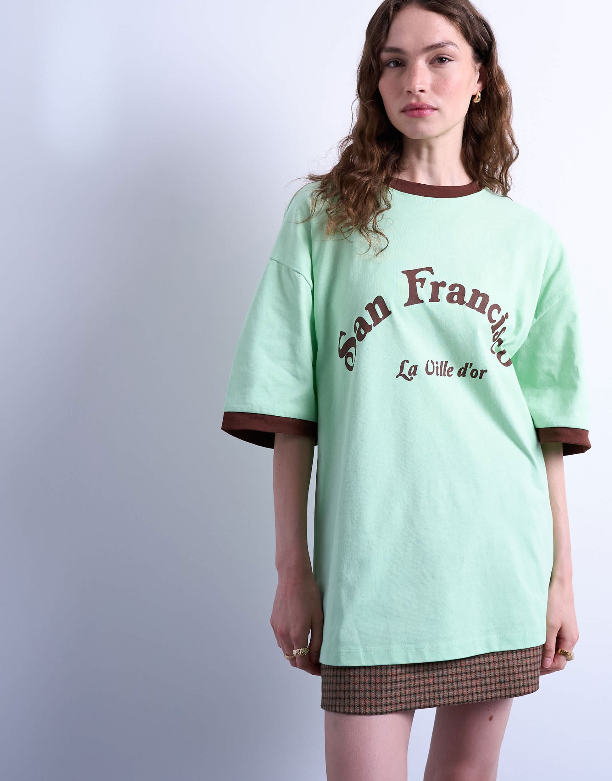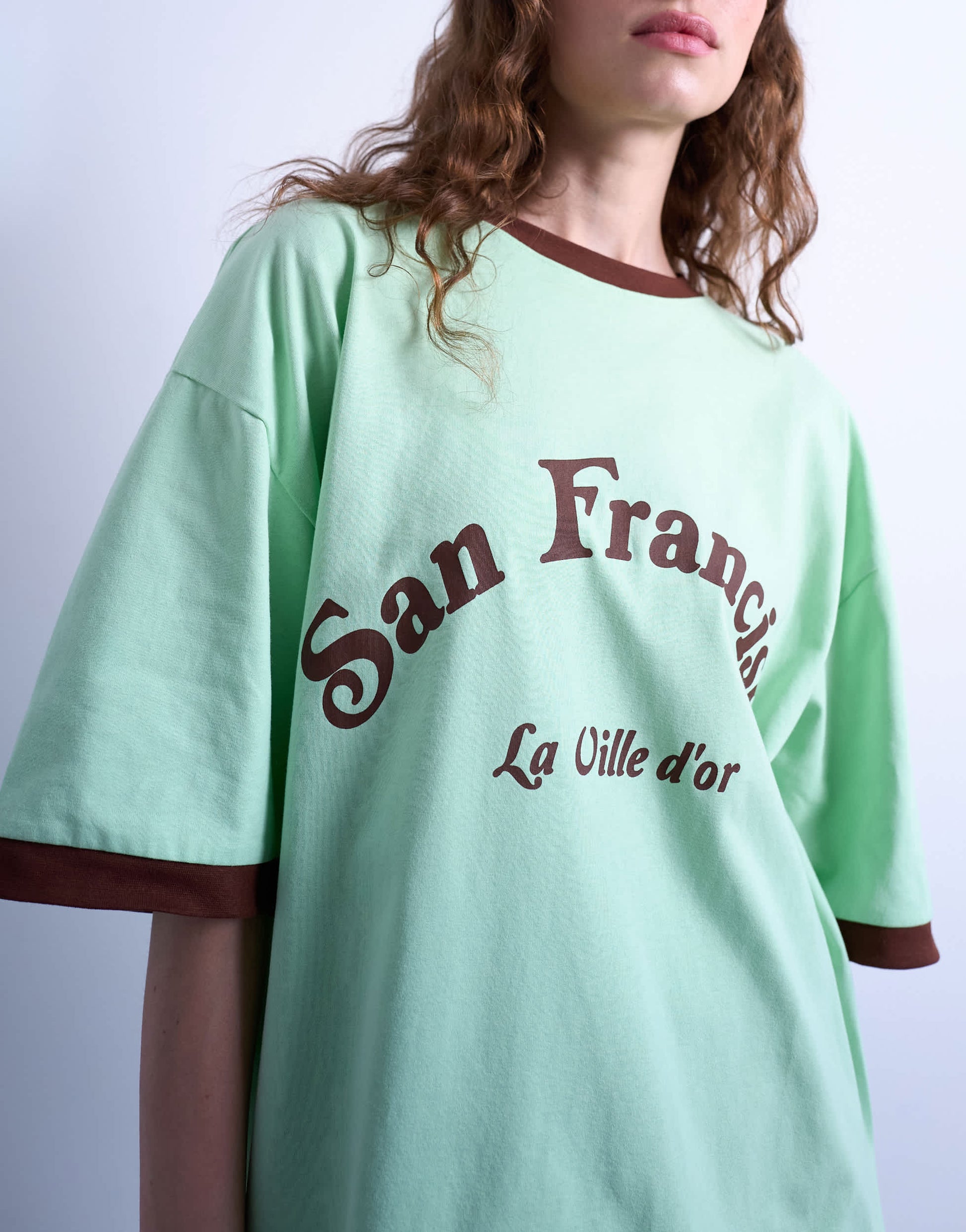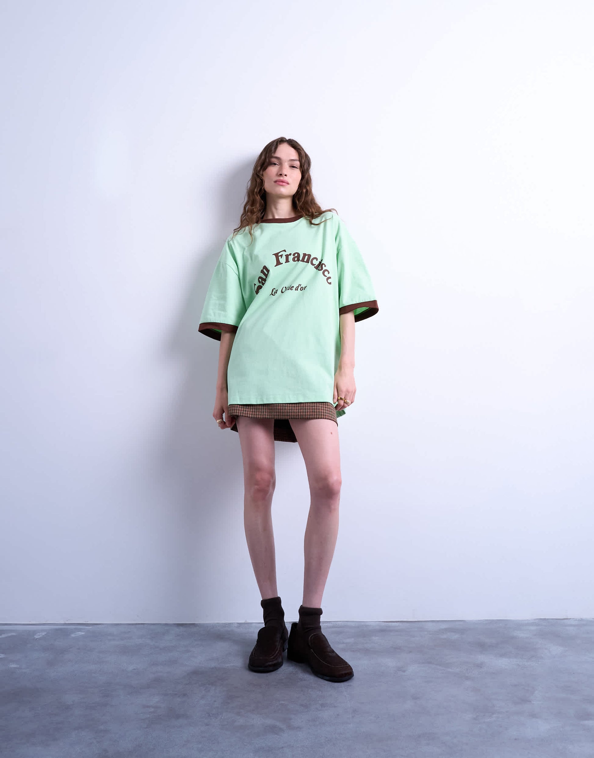 Tops by TopshopThis t-shirt is crafted from soft and stretchy jersey. It features a classic crew neck, short sleeves, San Francisco print and is cut with an oversized fit.