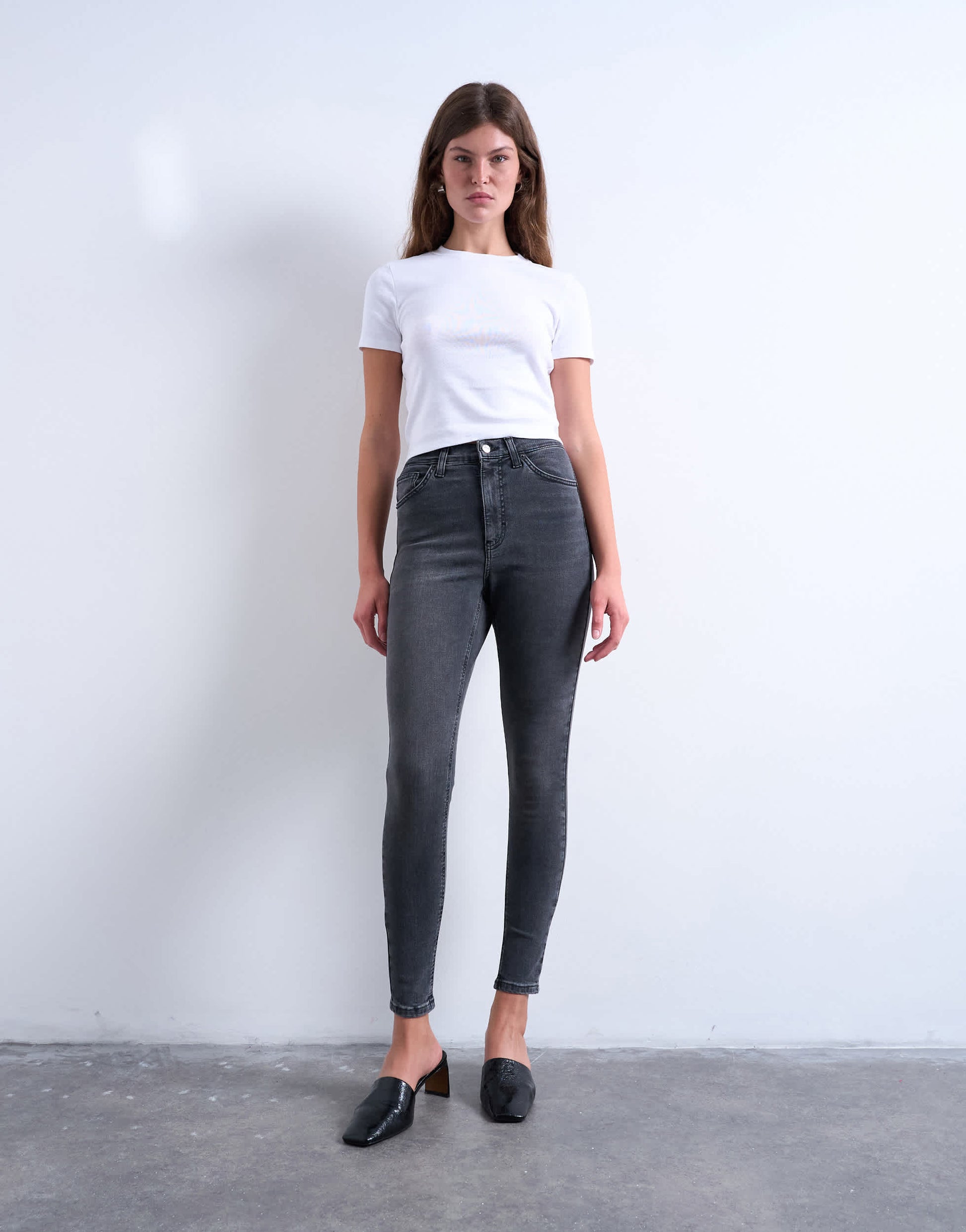 Jeans by TopshopThe Jamie jeans are cut with a high-rise waist and a skinny leg that finishes at the ankle. Featuring belt loops, a zip fly and five functional pockets, this style is crafted from denim with power stretch technology in a worn-in black wash.