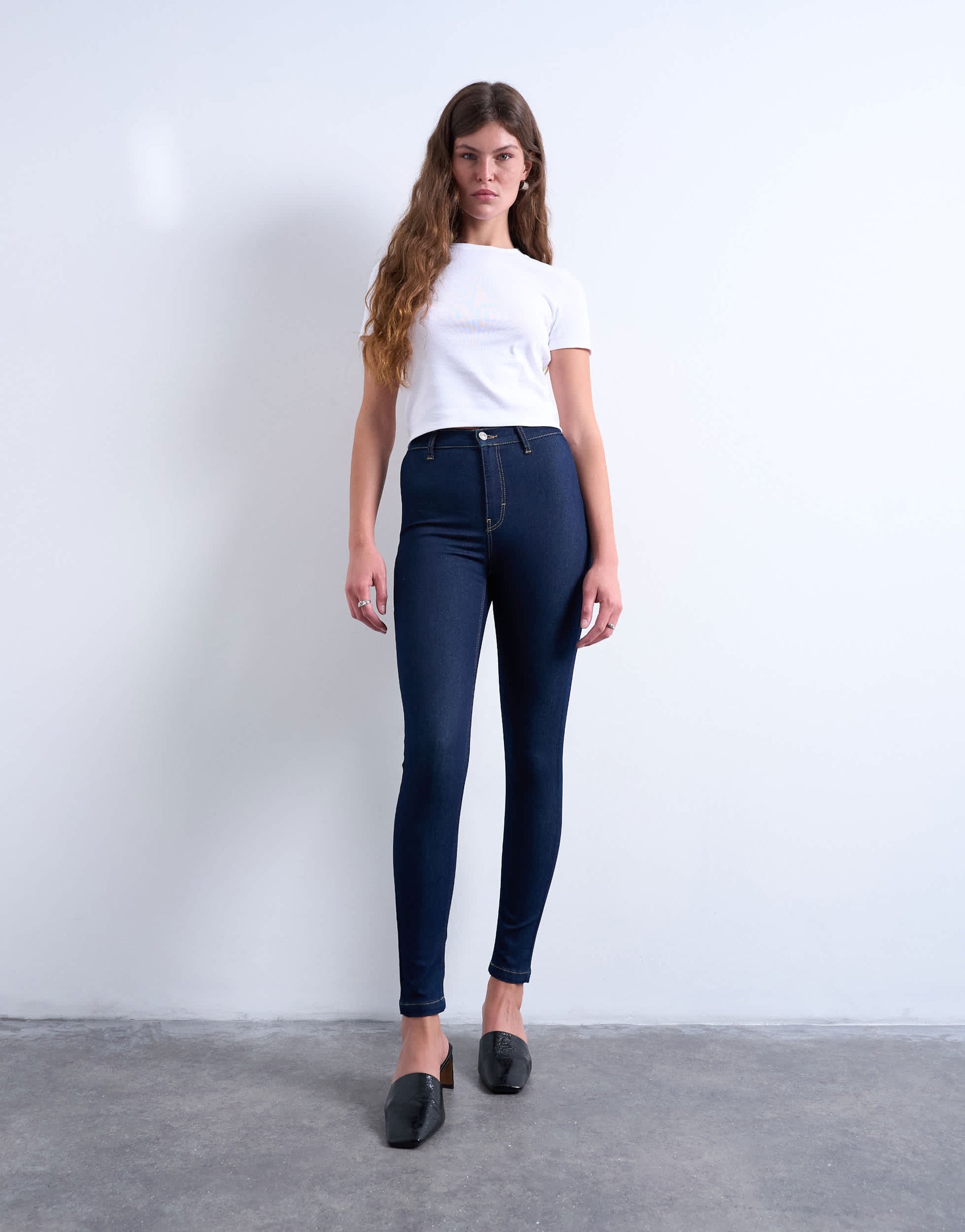 Jeans by TopshopThe iconic Joni jeans are cut with a high-rise waist and a sleek skinny leg, designed with built-in holding power technology for a sculpted fit. Featuring belt loops, a zip fly, two back pockets and a classic stacked hem that sits at the ankle, this style is made from comfortable stretch denim in a dark-blue wash.