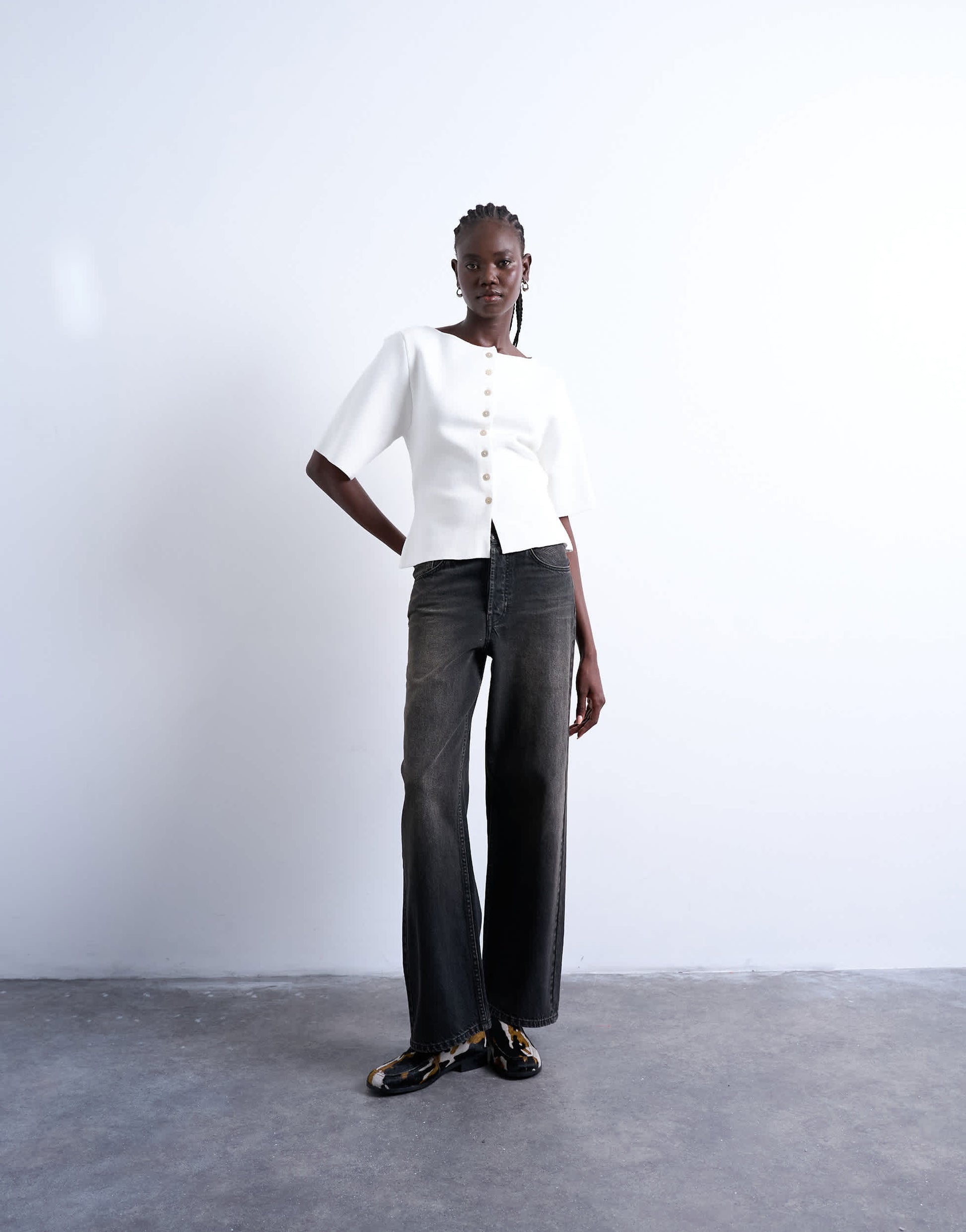 Jumpers & Cardigans by TopshopThis cardigan is crafted from a fine knit and features a versatile plain design. It has a wide neck, button placket, short sleeves and is cut with a regular fit.