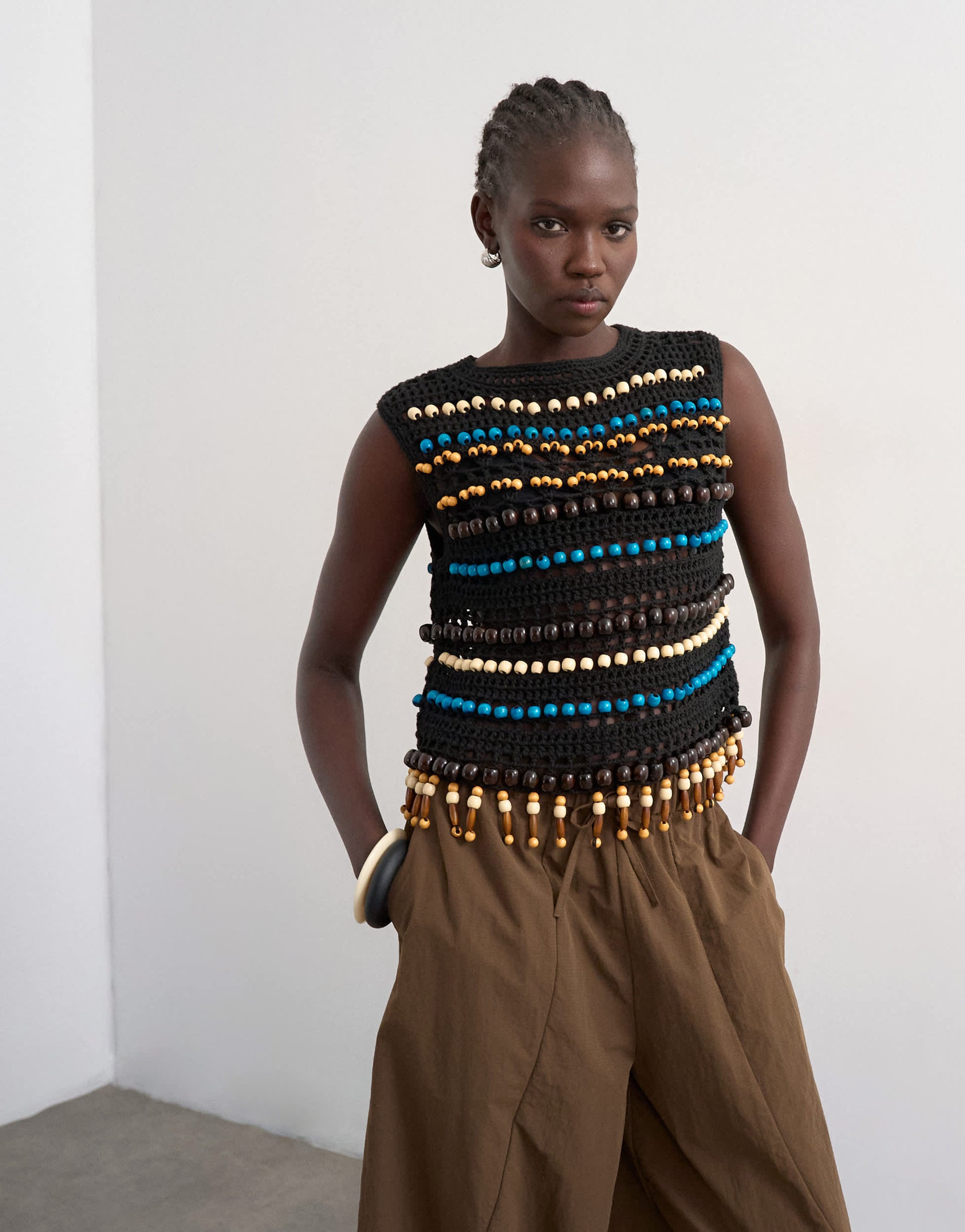 Tops by TopshopThis top has been crafted from a chunky knit with all-over bead detailing. The sleeveless style features a round neck, tassel hem and is cut to a regular fit.