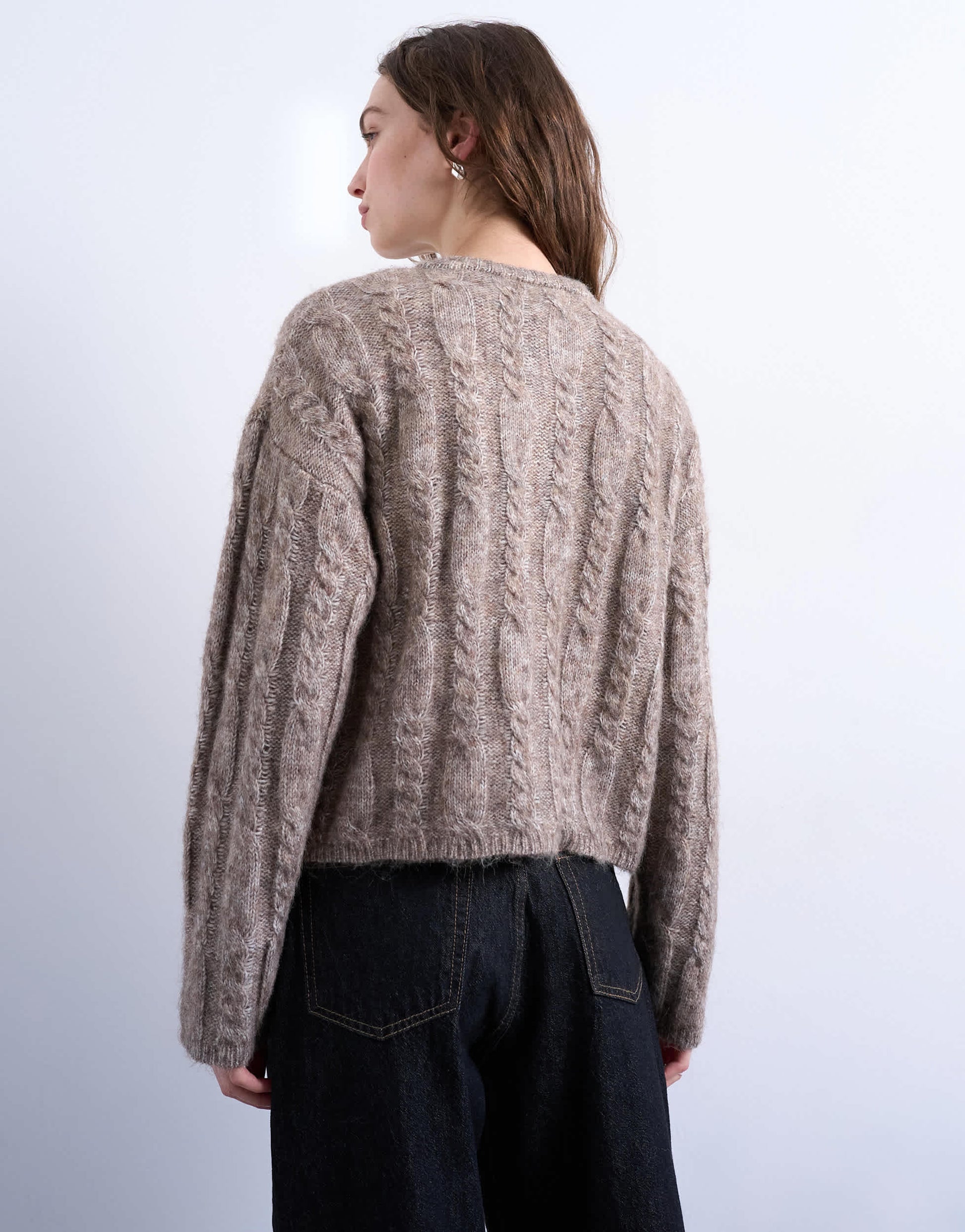 Jumpers & Cardigans by TopshopCut from a chunky cable-knit with a soft, fluffy texture, this cardigan features a crew neck, long sleeves and a central button placket.