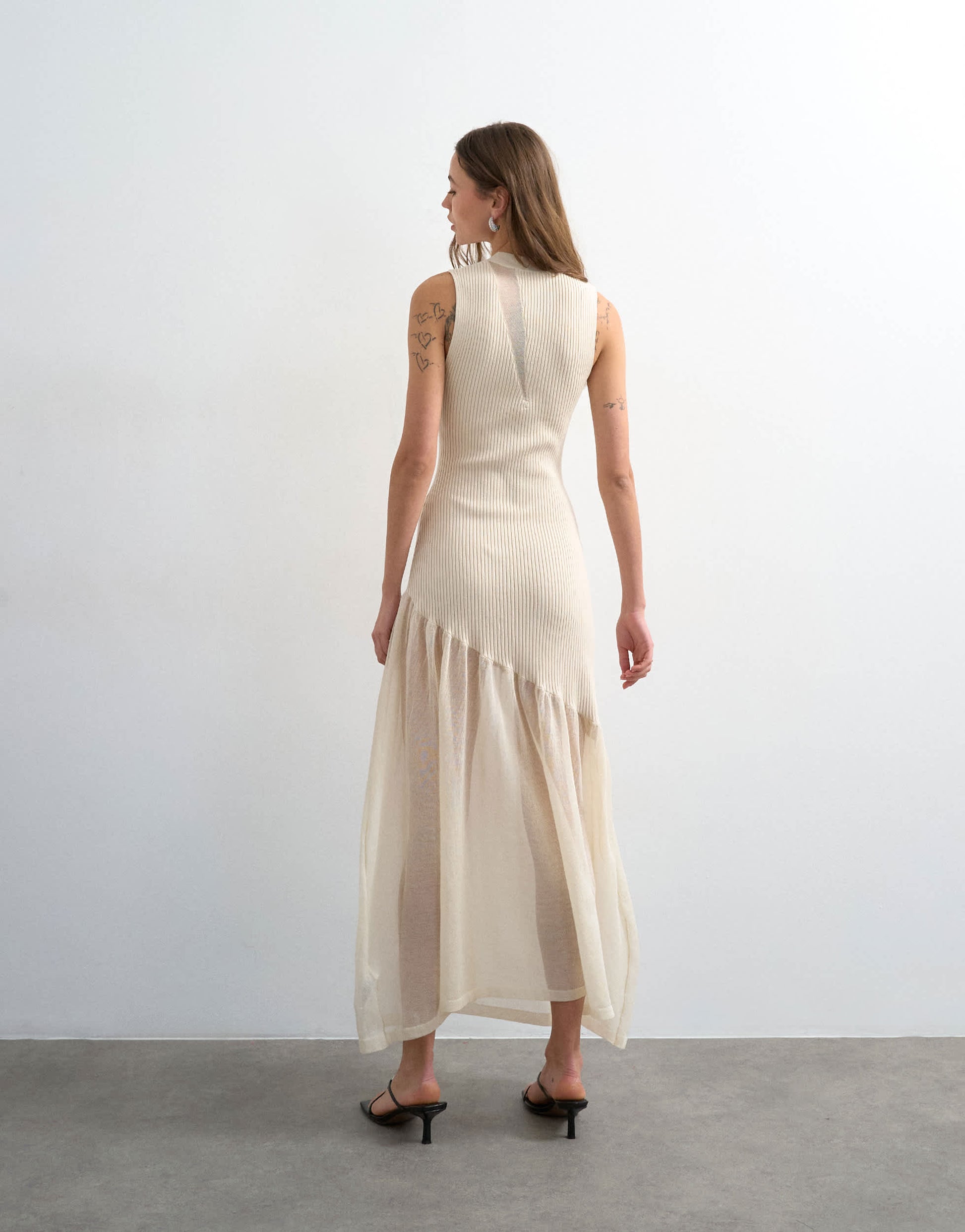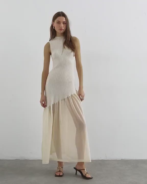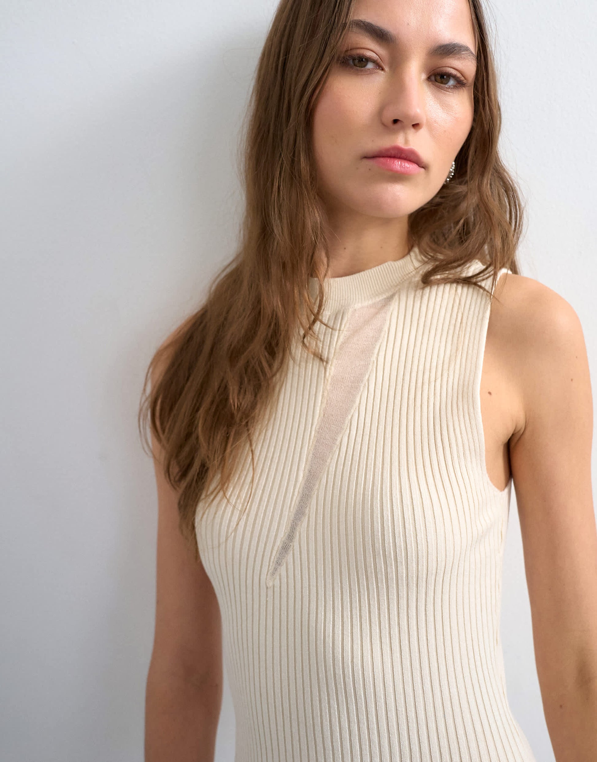 Dresses by TopshopThis dress is crafted from mixed fabrics, part sheer and part ribbed knit. The sleeveless style features a high neck and is cut with a regular fit.