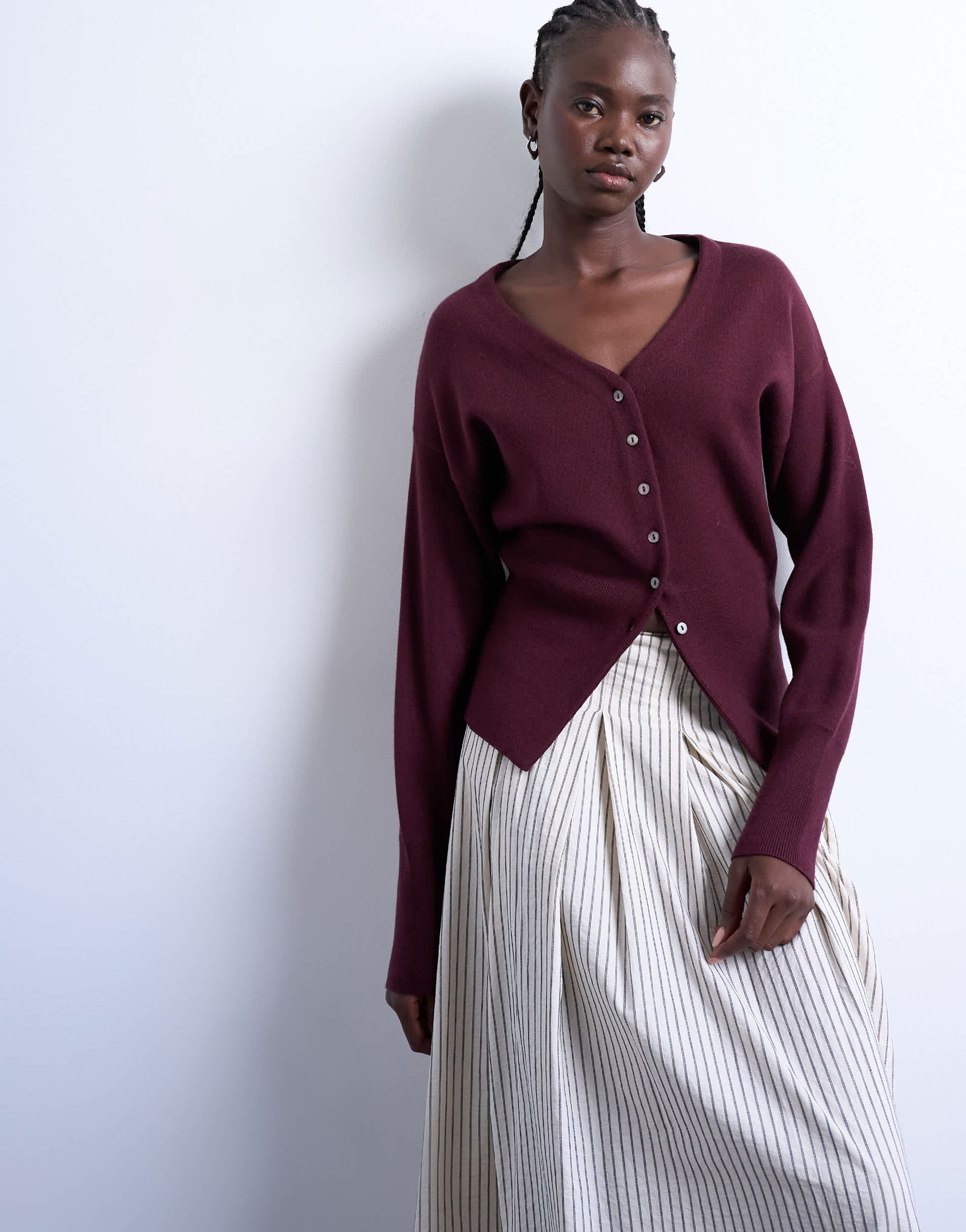 Jumpers & Cardigans by TopshopThis cardigan is crafted from a fine knit and features a versatile plain design. It has a V-neck, button placket, long sleeves, a fitted waist and a longline cut.