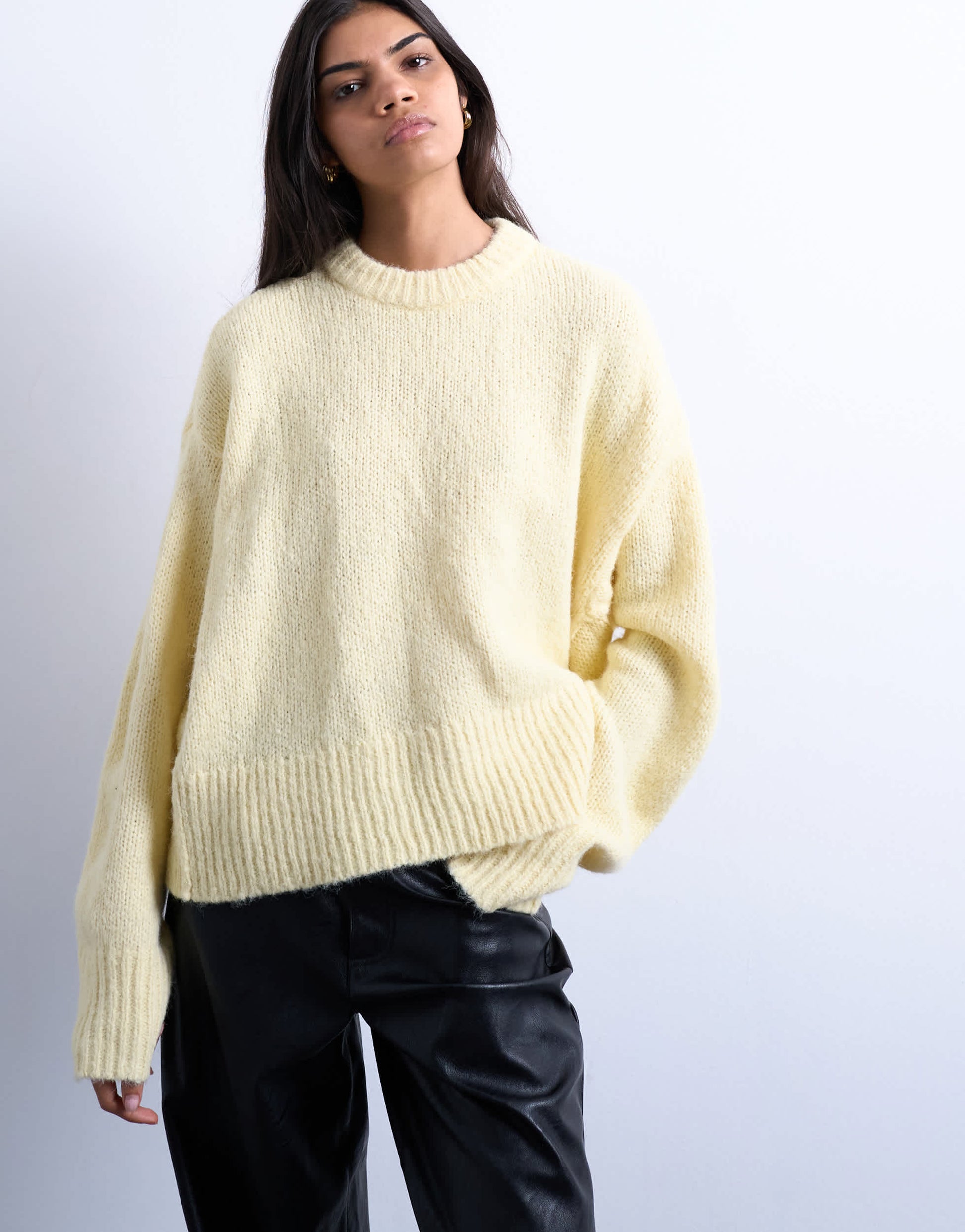 Jumpers & Cardigans by TopshopThis jumper is crafted from a soft brushed knit for a cosy feel. Designed with a crew neckline, dropped shoulders, and ribbed trims, it’s cut to a relaxed fit for effortless, everyday comfort.