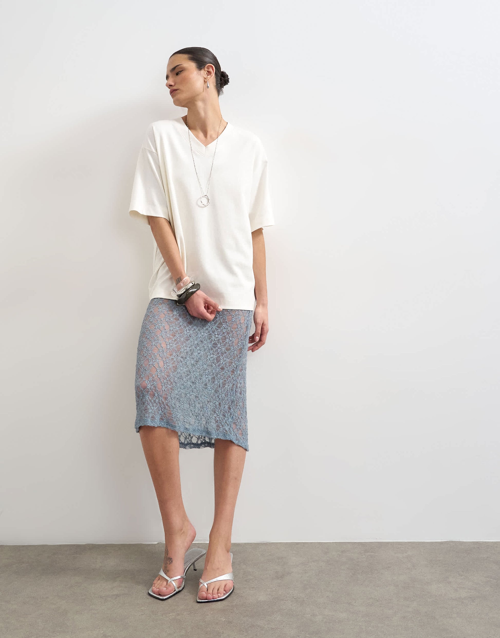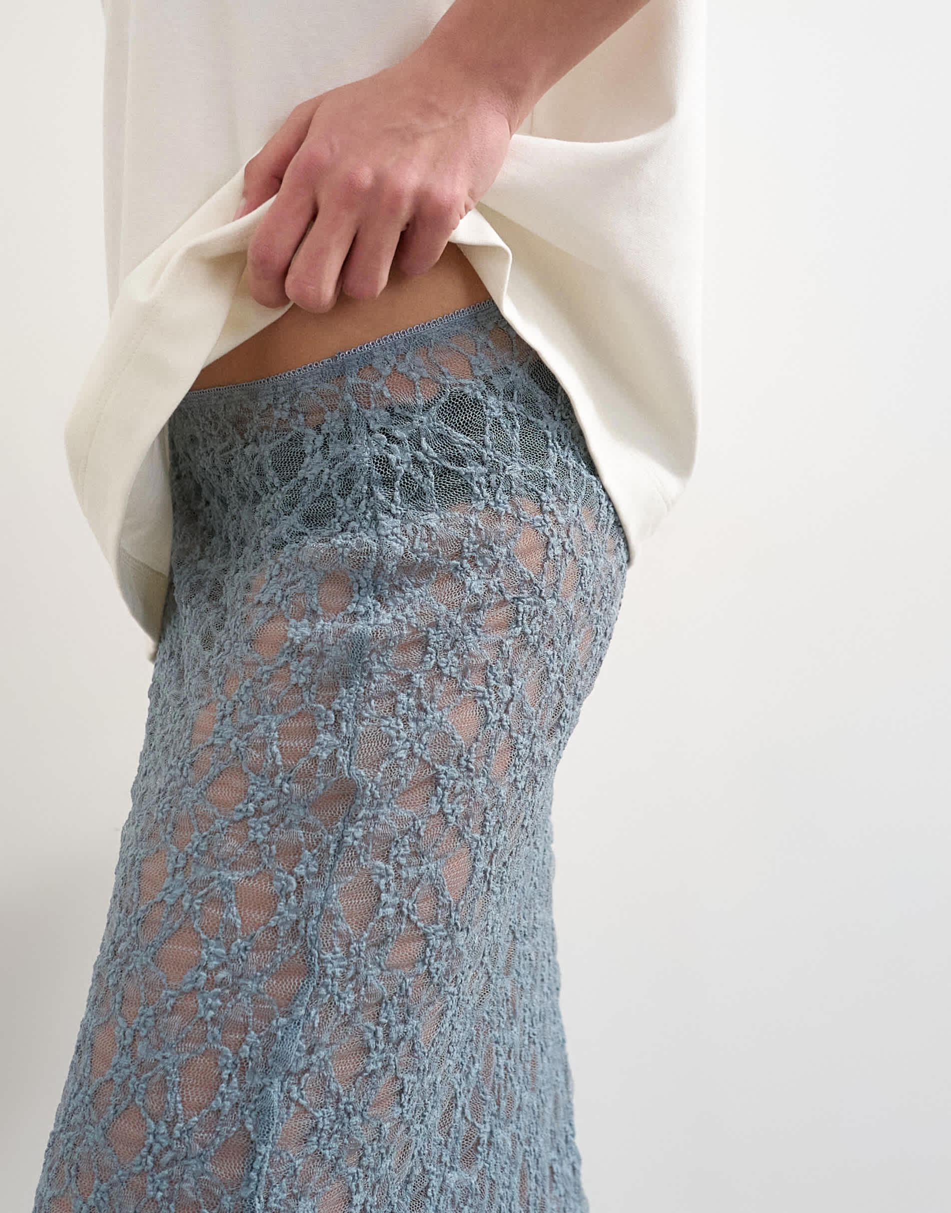 Skirts by TopshopThis skirt is crafted from lace in a blue shade. It features a mid-rise waist, sheer finish and is cut to a midi length.