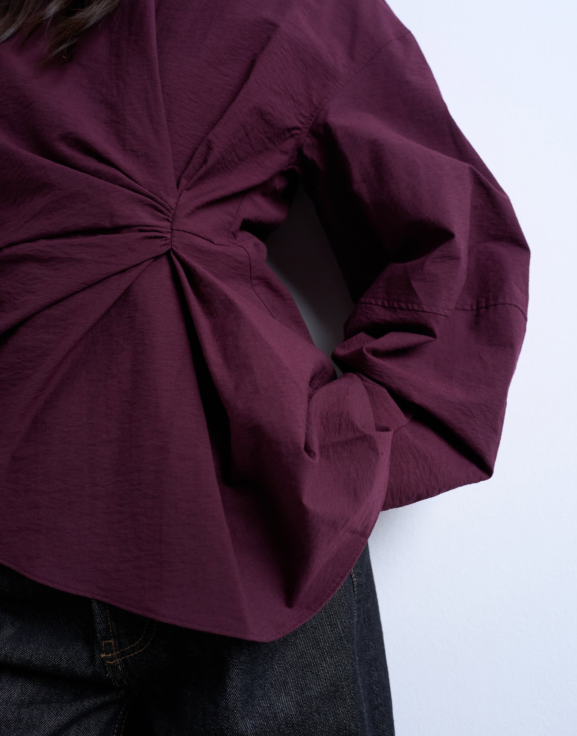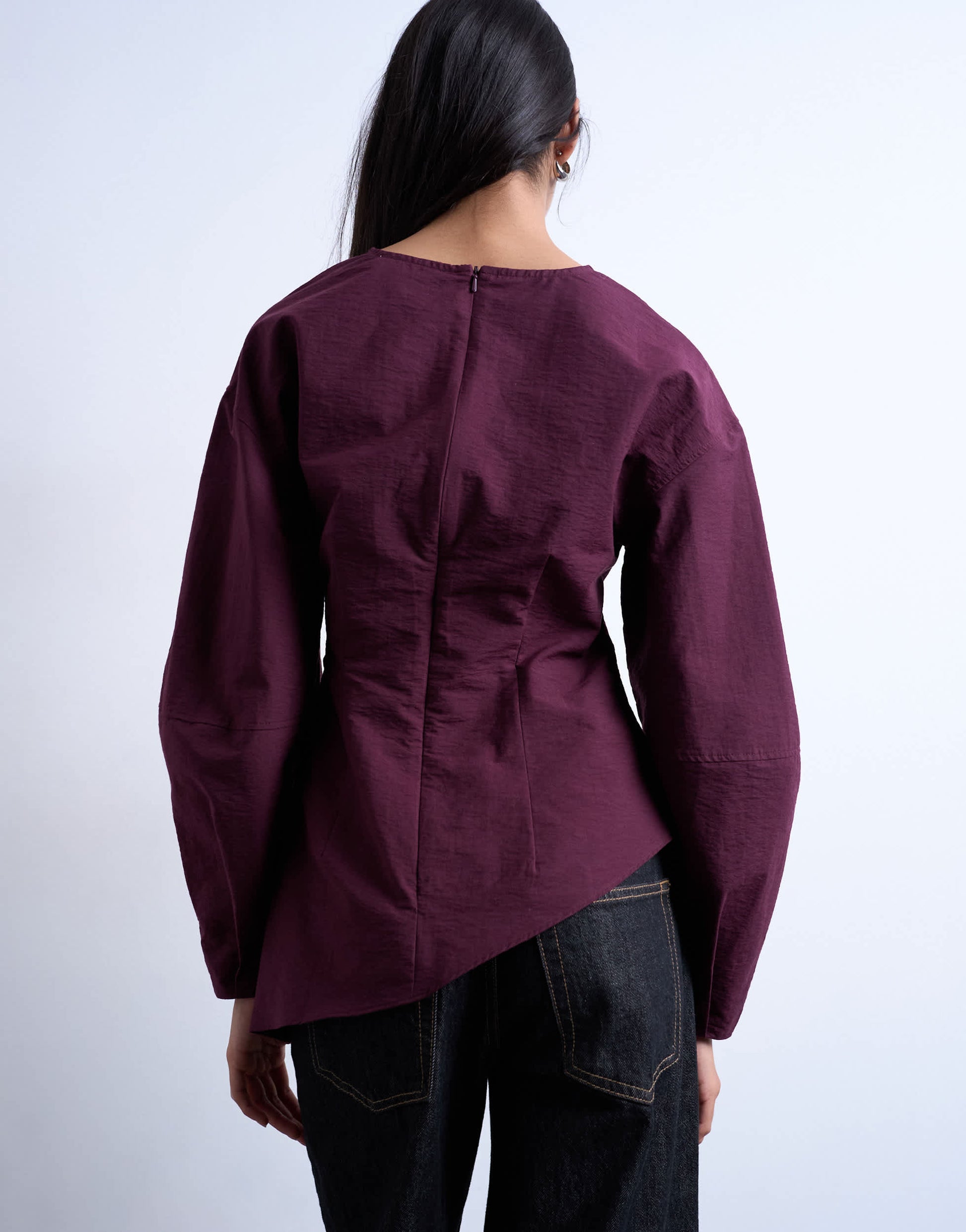 Tops by TopshopIn a rich red-wine hue, this top features a boat neck, voluminous sleeves and pleating to cinch the waist. It fastens via a zip to the reverse.