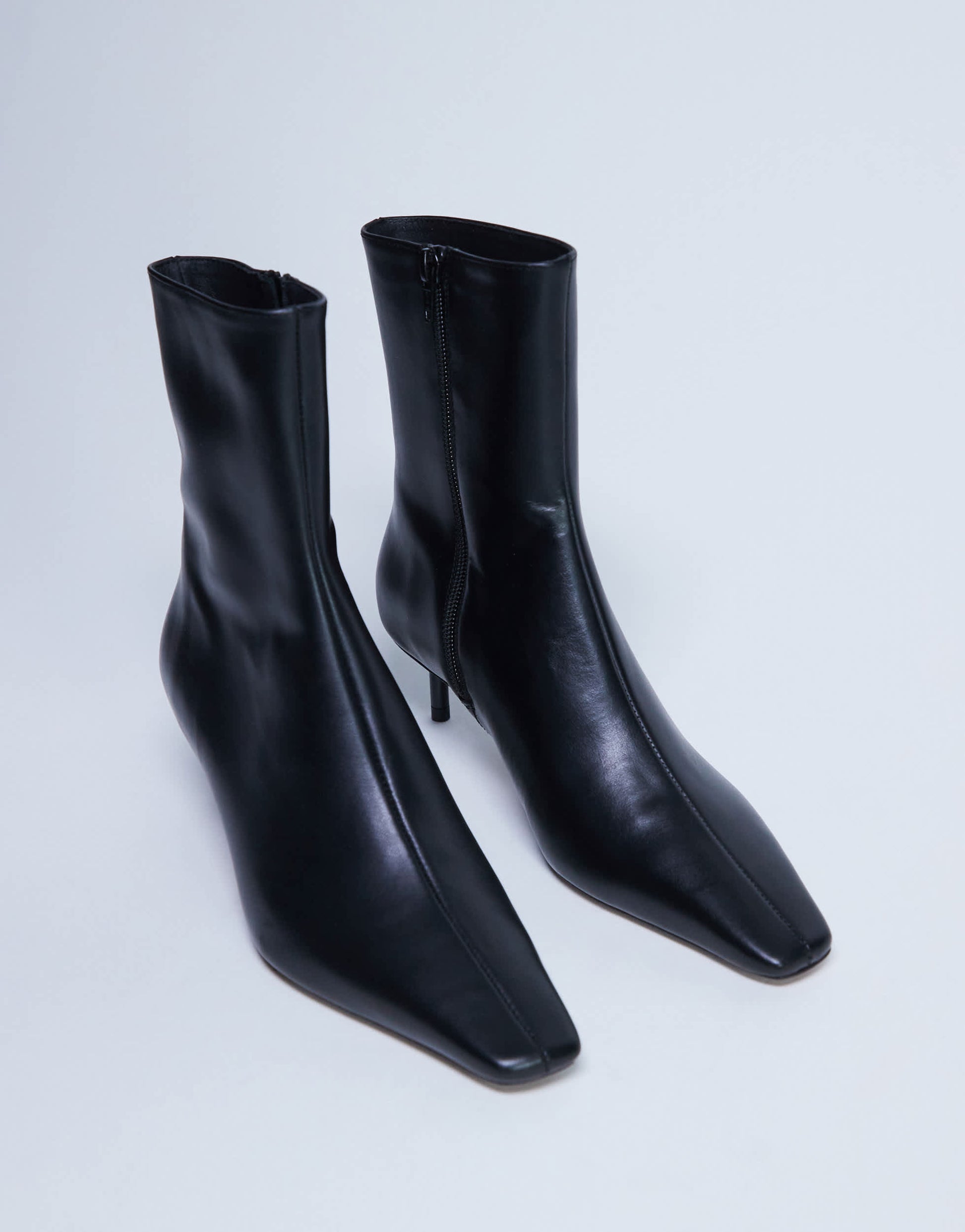 Topshop Narla premium real leather high pin heeled ankle boots in black