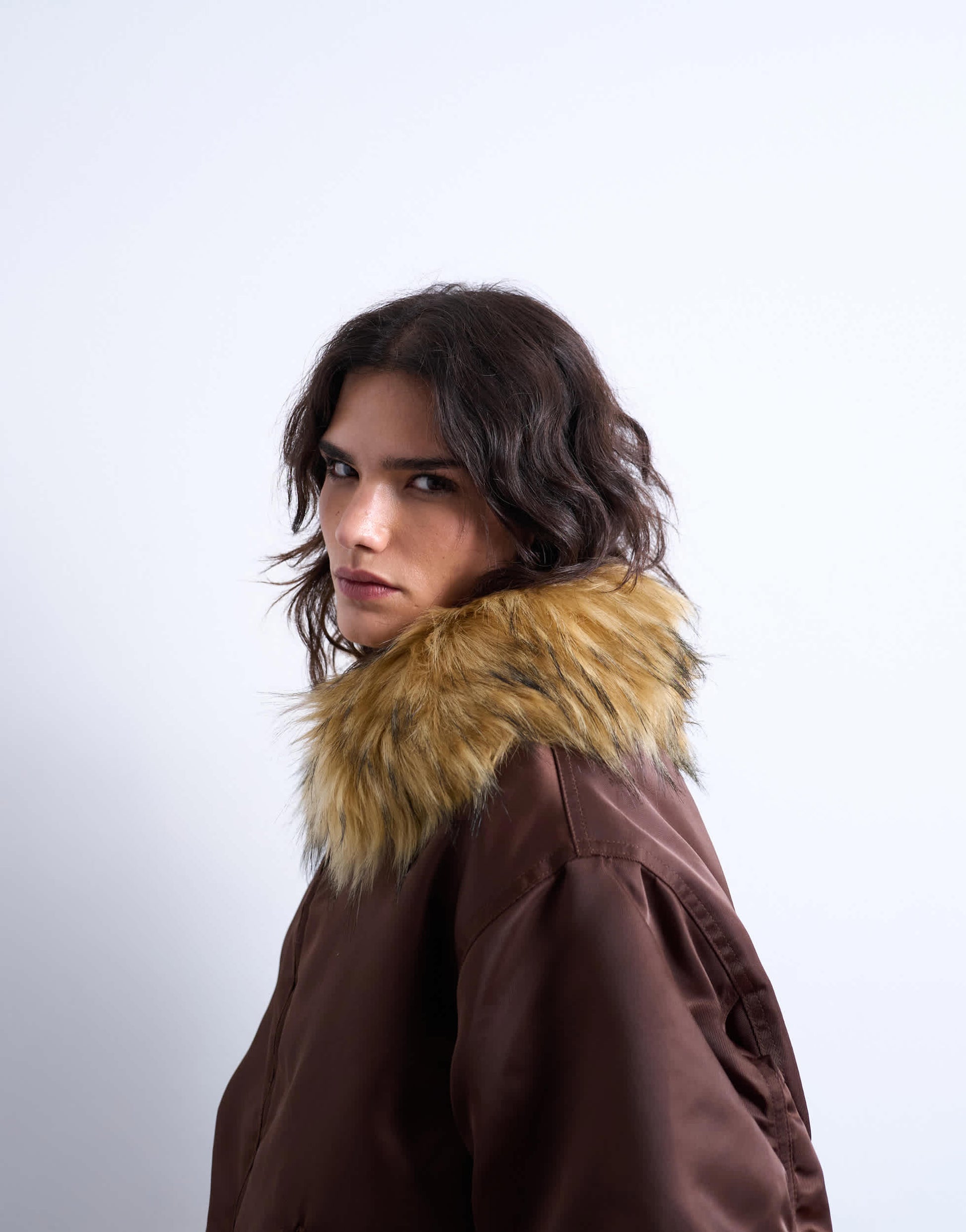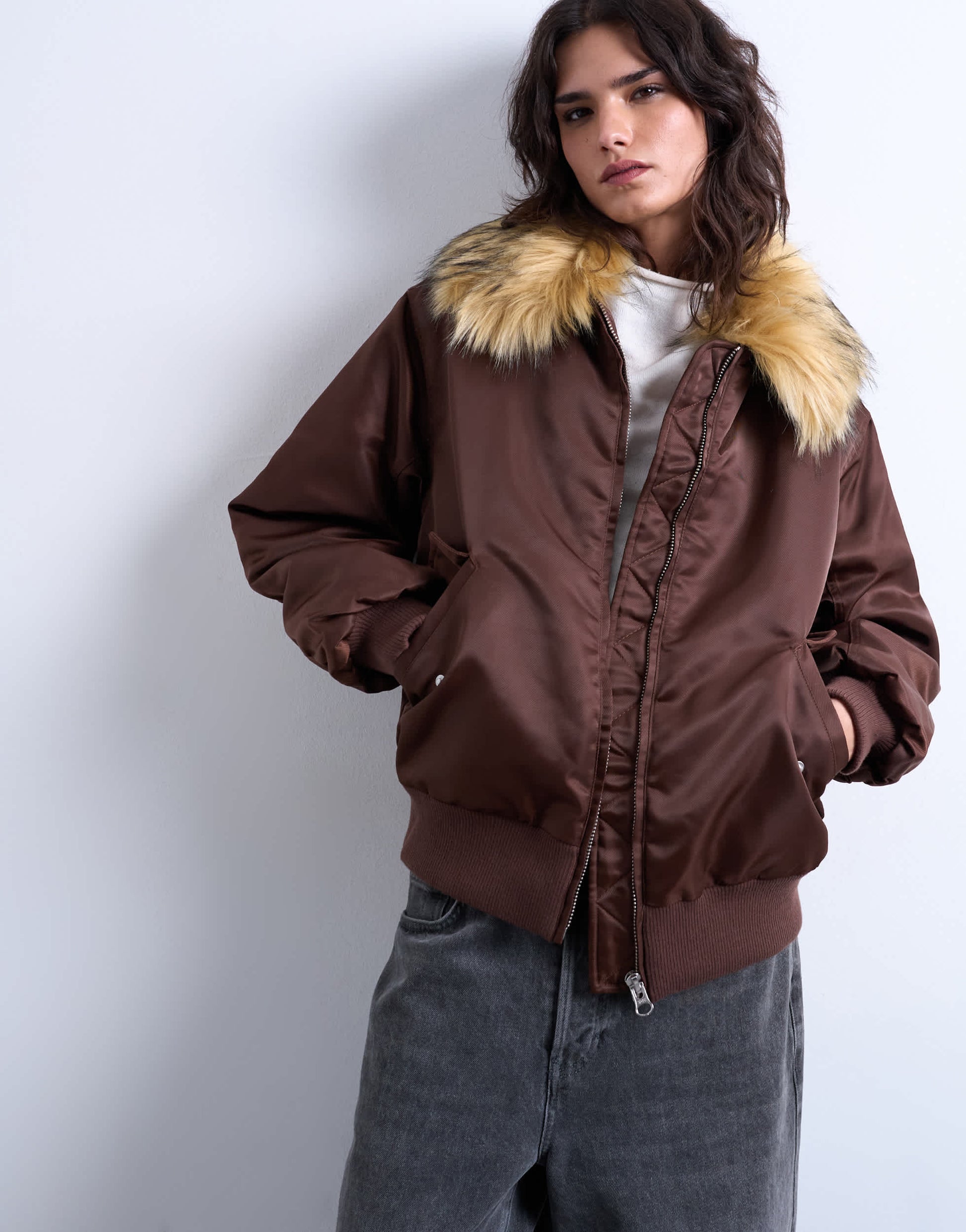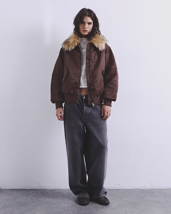 Coats & Jackets by TopshopThis bomber jacket is crafted from a smooth, crisp fabric with a faux-fur collar. It features a zip fastening, side pockets, ribbed trims and is cut with a regular fit.