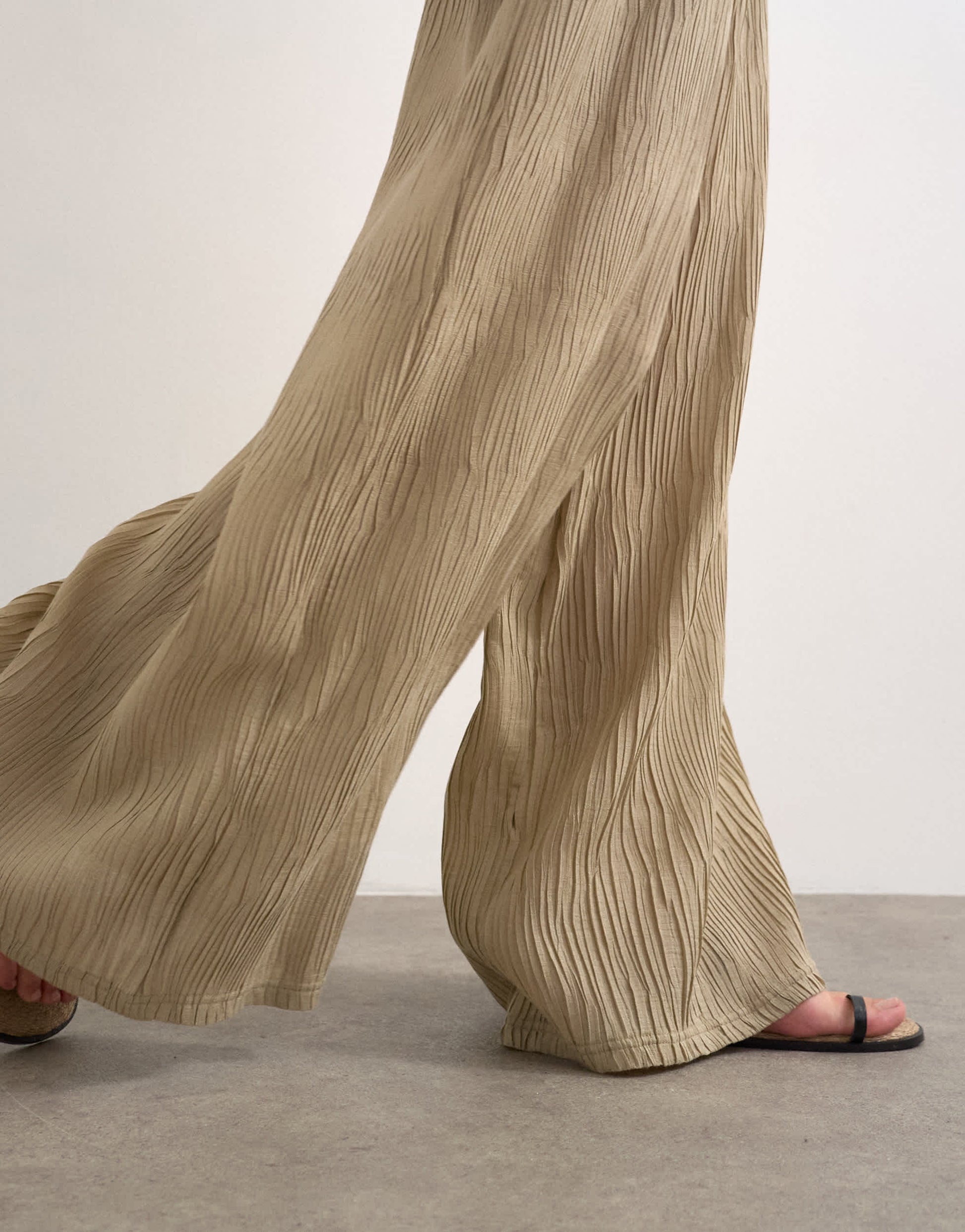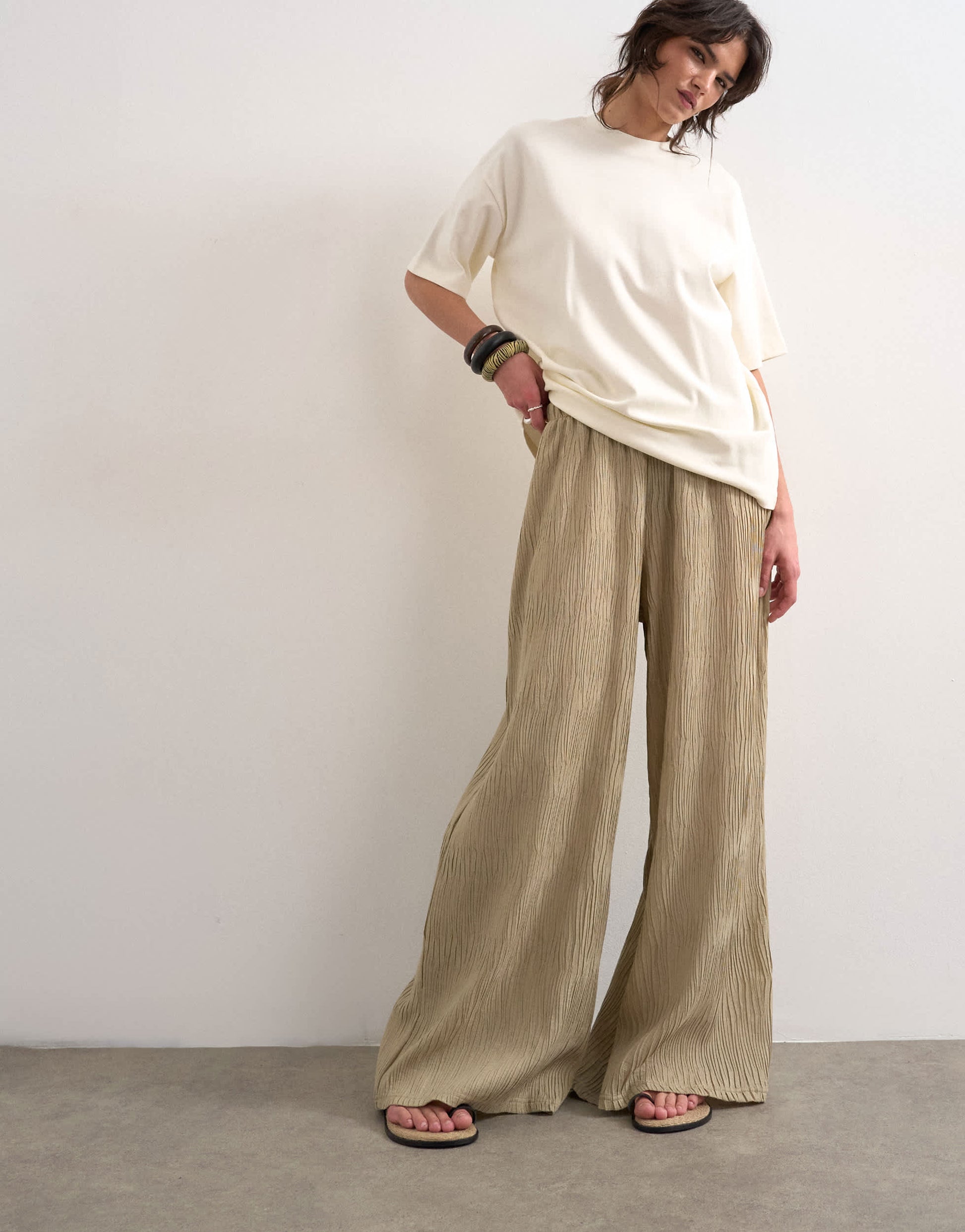Trousers & Leggings by TopshopThese trousers are crafted from plisse in a beige shade. Featuring a high-rise, elasticated waist, this style is cut to a wide leg for a relaxed fit.