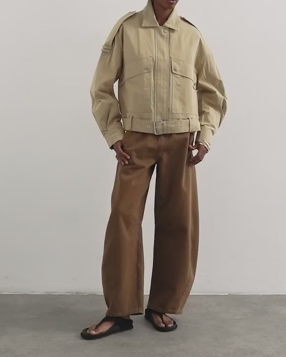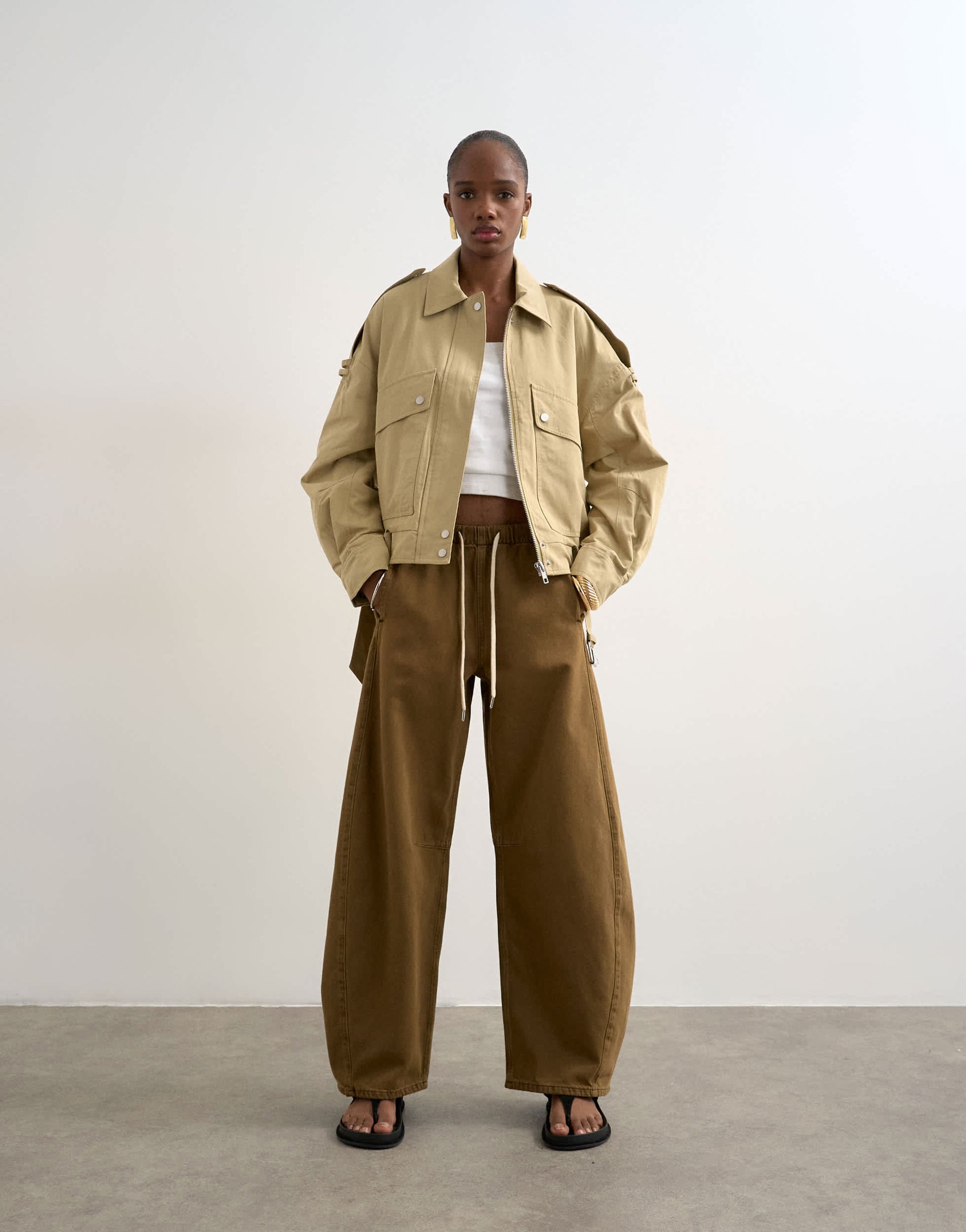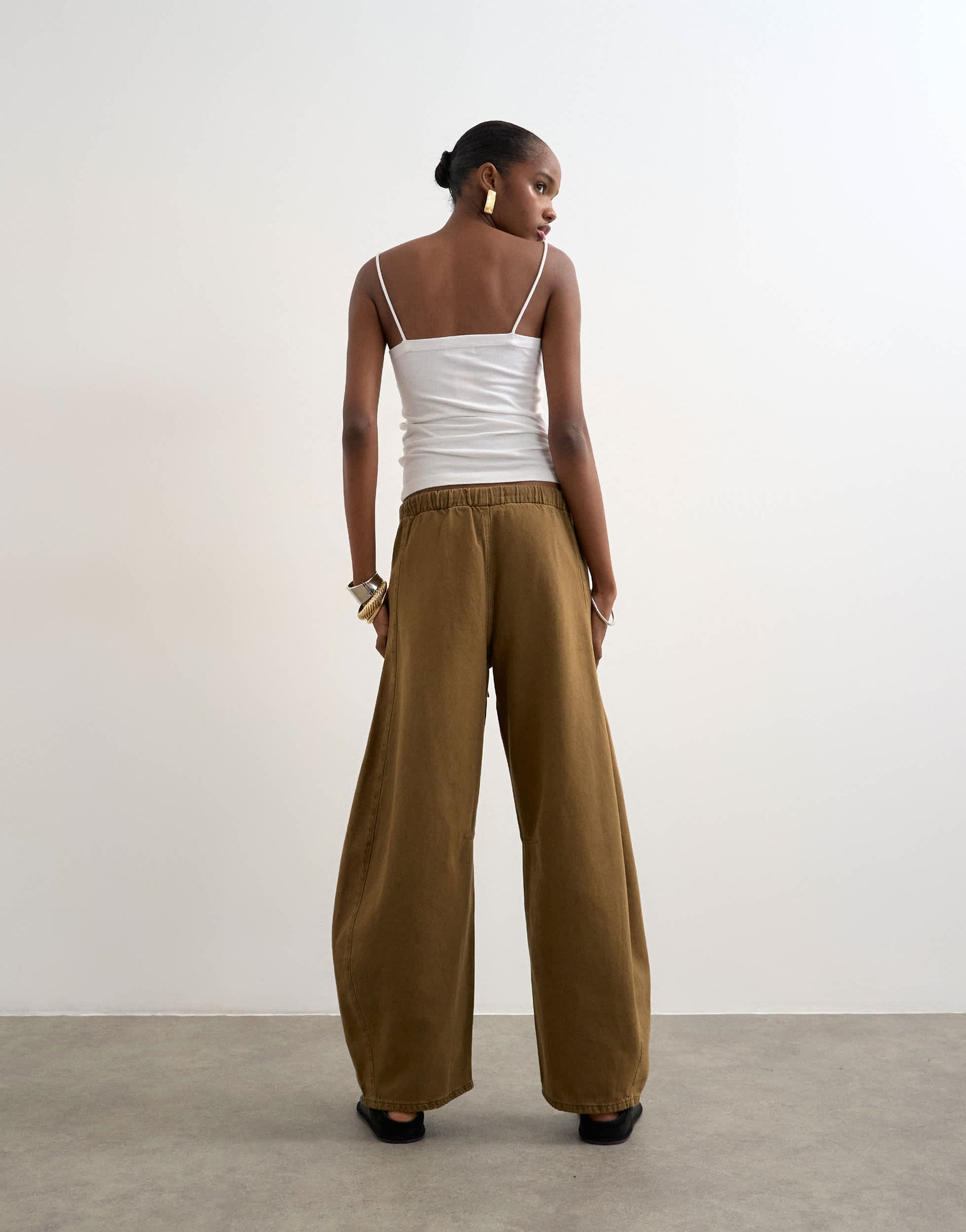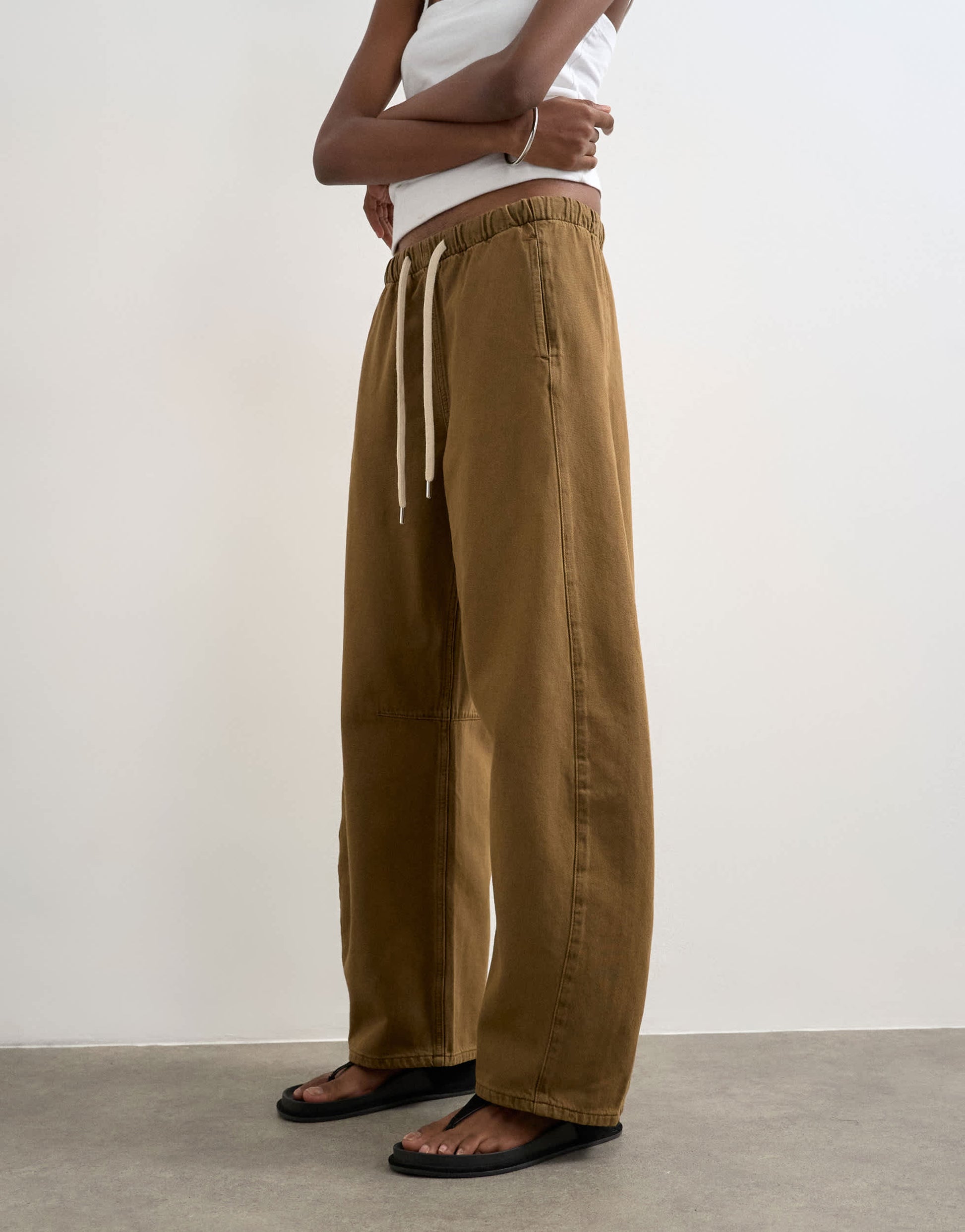 Jeans by TopshopThe pull-on barrel jeans are cut with a mid-rise, elasticated waist and a barrel leg that stacks at the ankle. Featuring two side pockets and an adjustable waist, this style is crafted from lightweight denim in a brown wash.