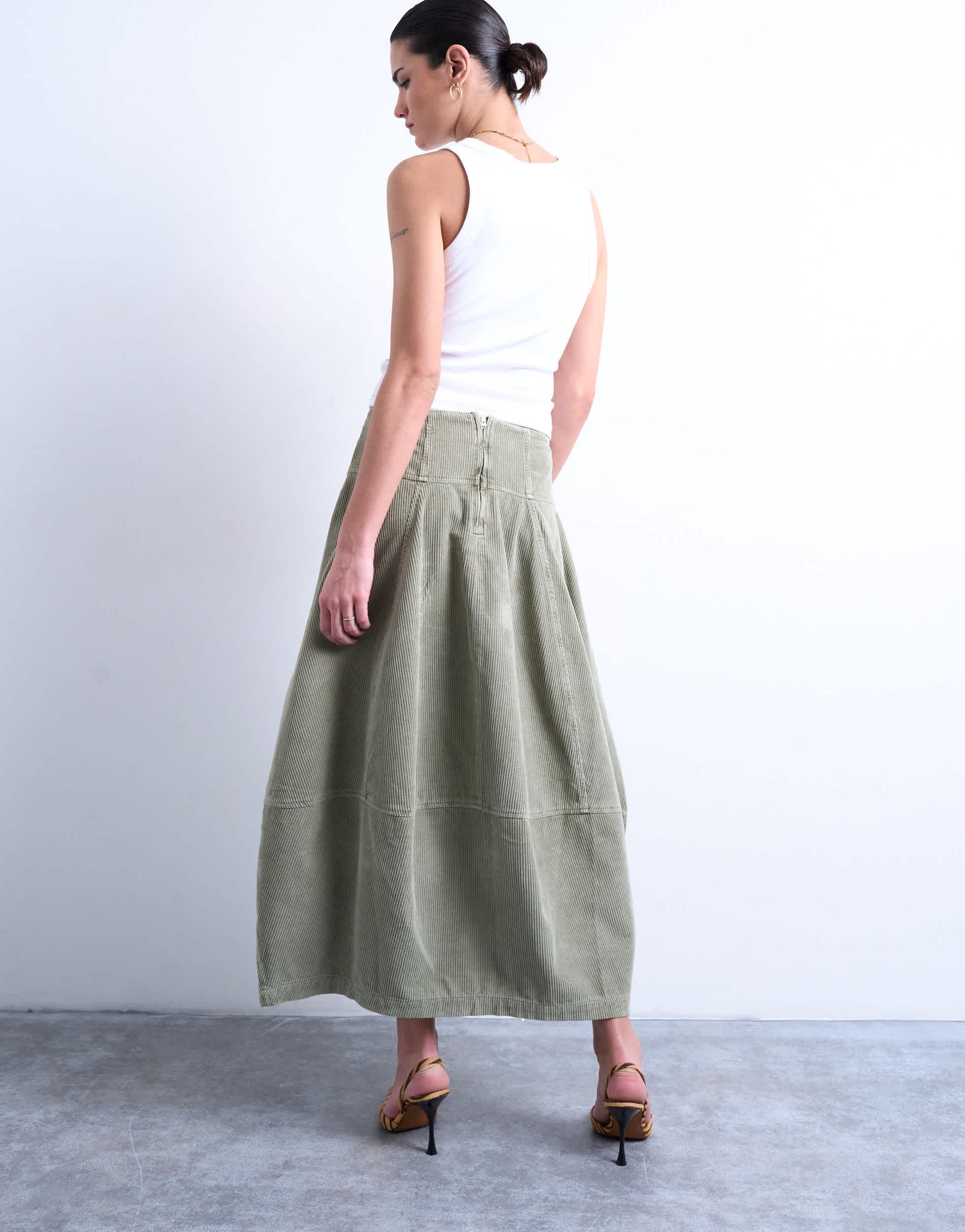Skirts by TopshopThis skirt is crafted from a plush corduroy in sage green. It features a mid-rise waist and barrel cut complete with seam detailing and a zip to the reverse.