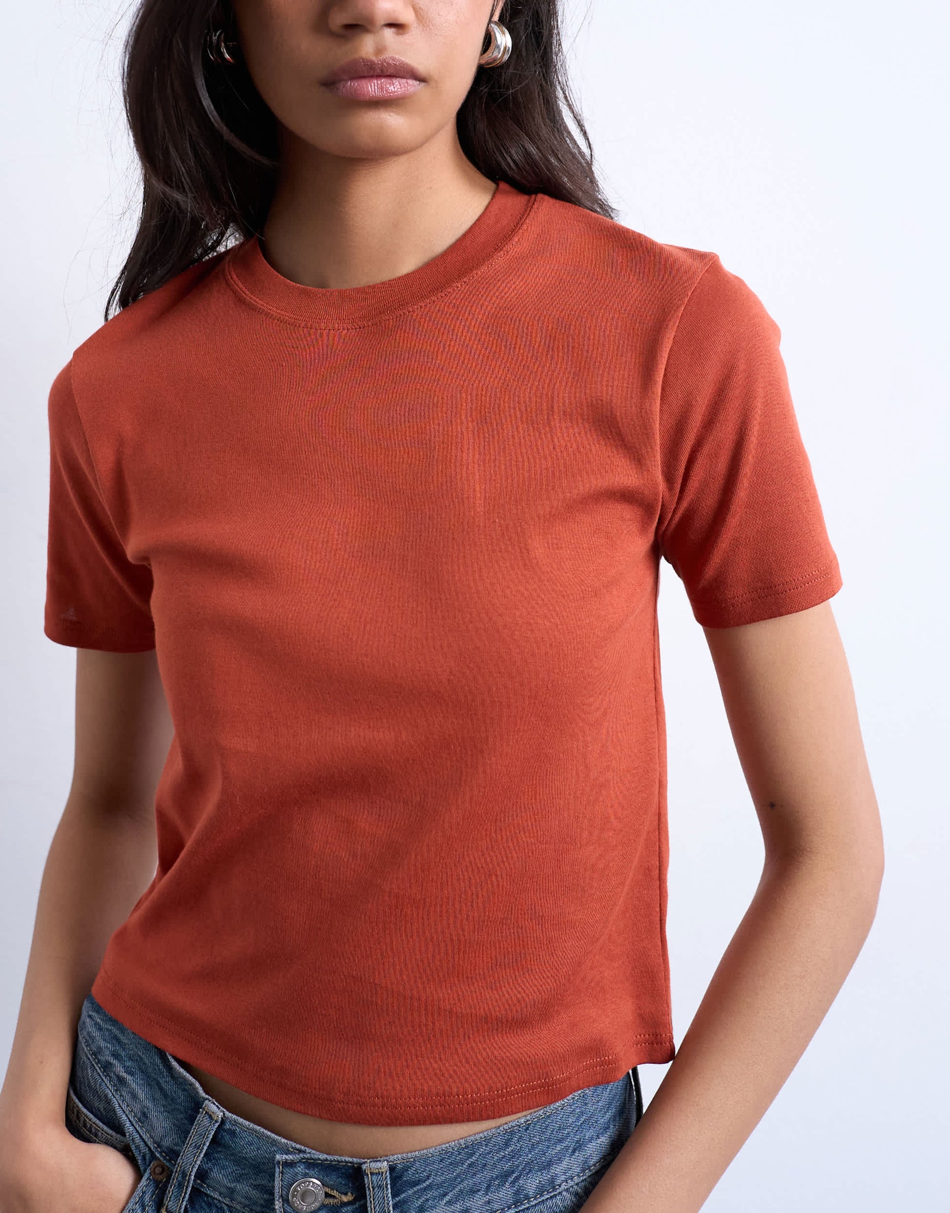 Tops by TopshopThis T-shirt is cut from soft, breathable jersey with a crew neck, short sleeves and a shrunken fit.