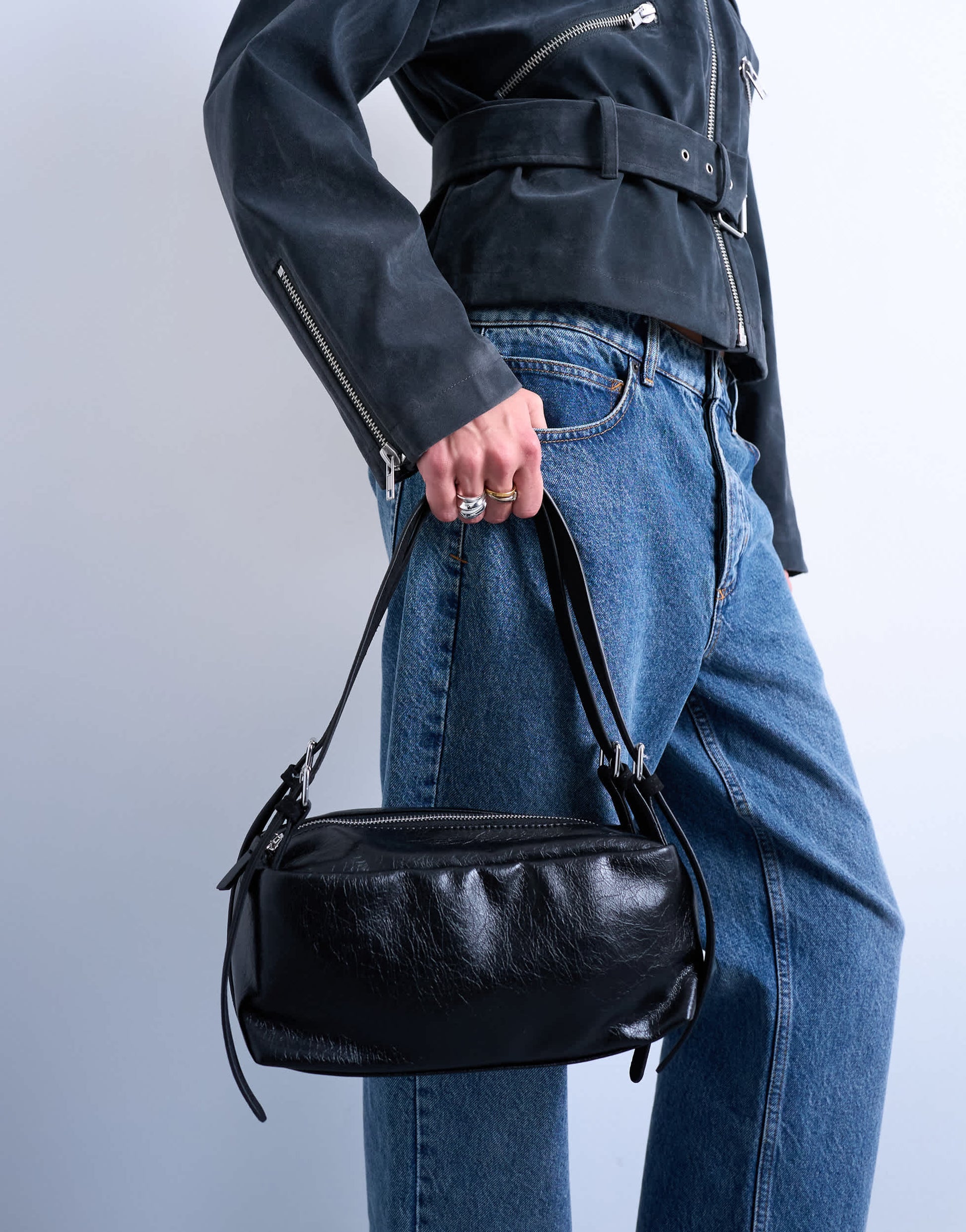 Accessories by TopshopThe Siris shoulder bag is crafted from a lightly textured fabric. Coming in a timeless black shade, it features adjustable shoulder straps, a zip fastening and silver-tone hardware.