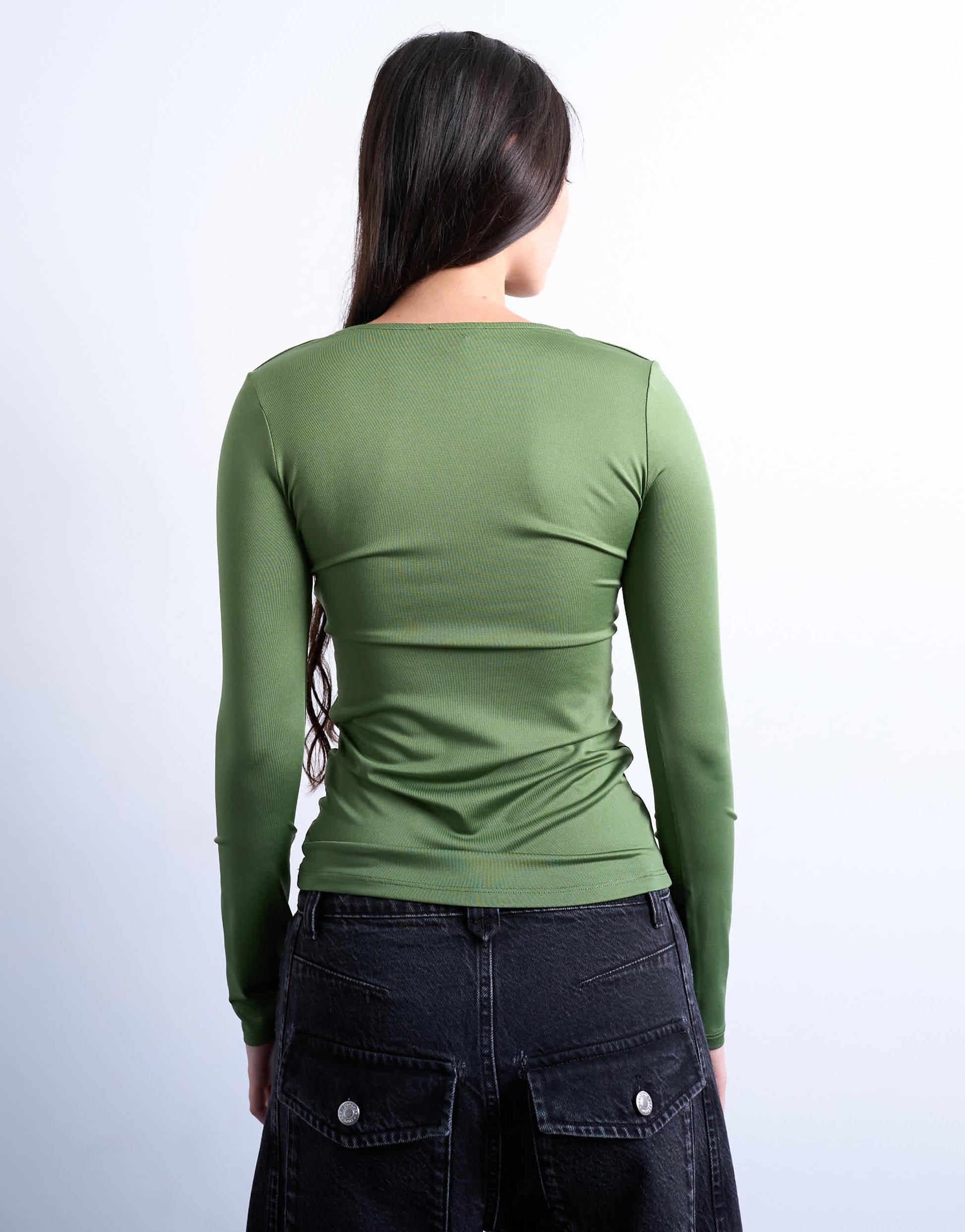Tops by TopshopThis top is crafted from a soft, slinky jersey in a khaki shade. It features a crew neck, long sleeves and is cut to a slim fit.