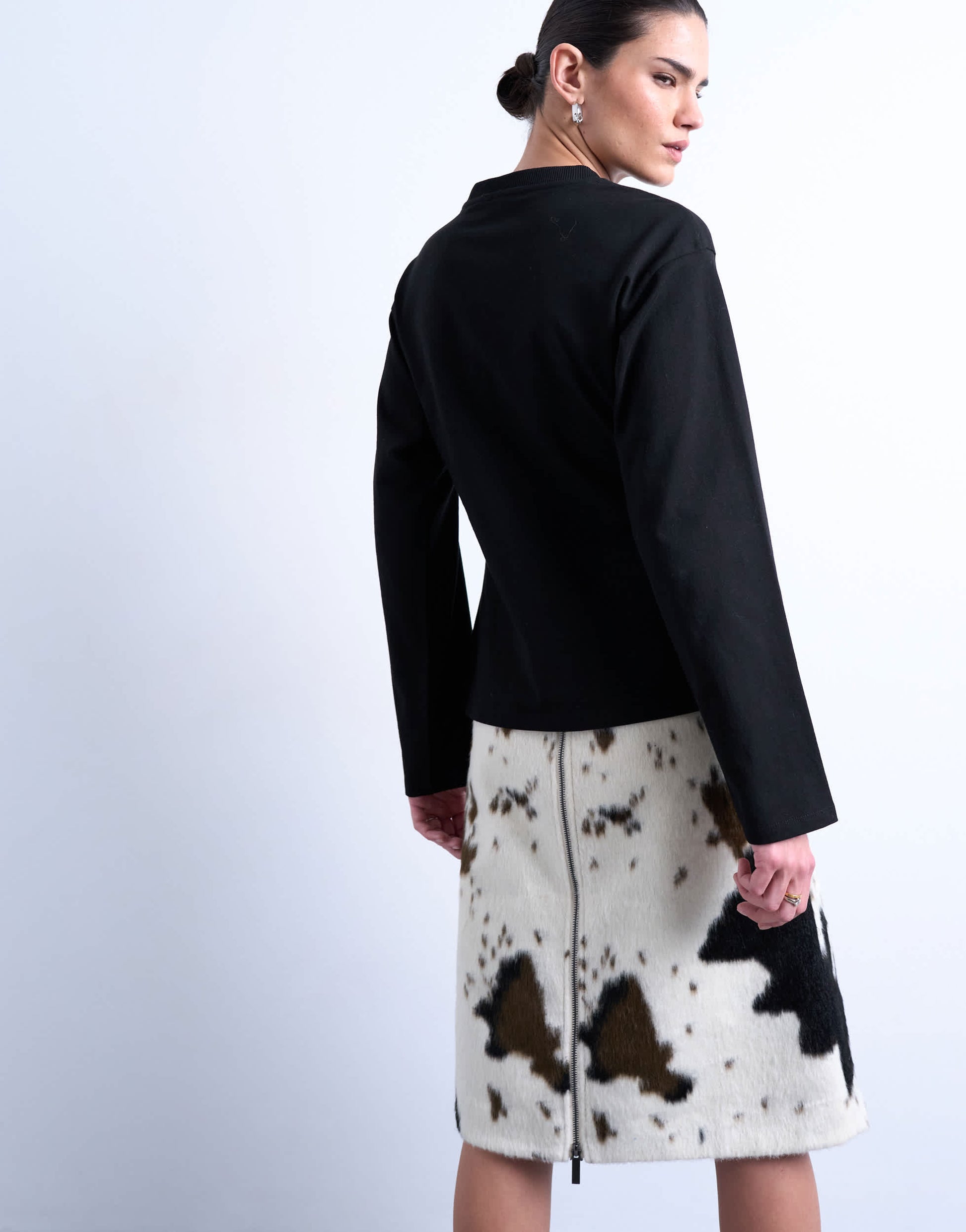 Tops by TopshopThis T-shirt is crafted from soft, stretchy jersey in a black shade. It features a crew neck, long sleeves and cinched waist on a regular fit.