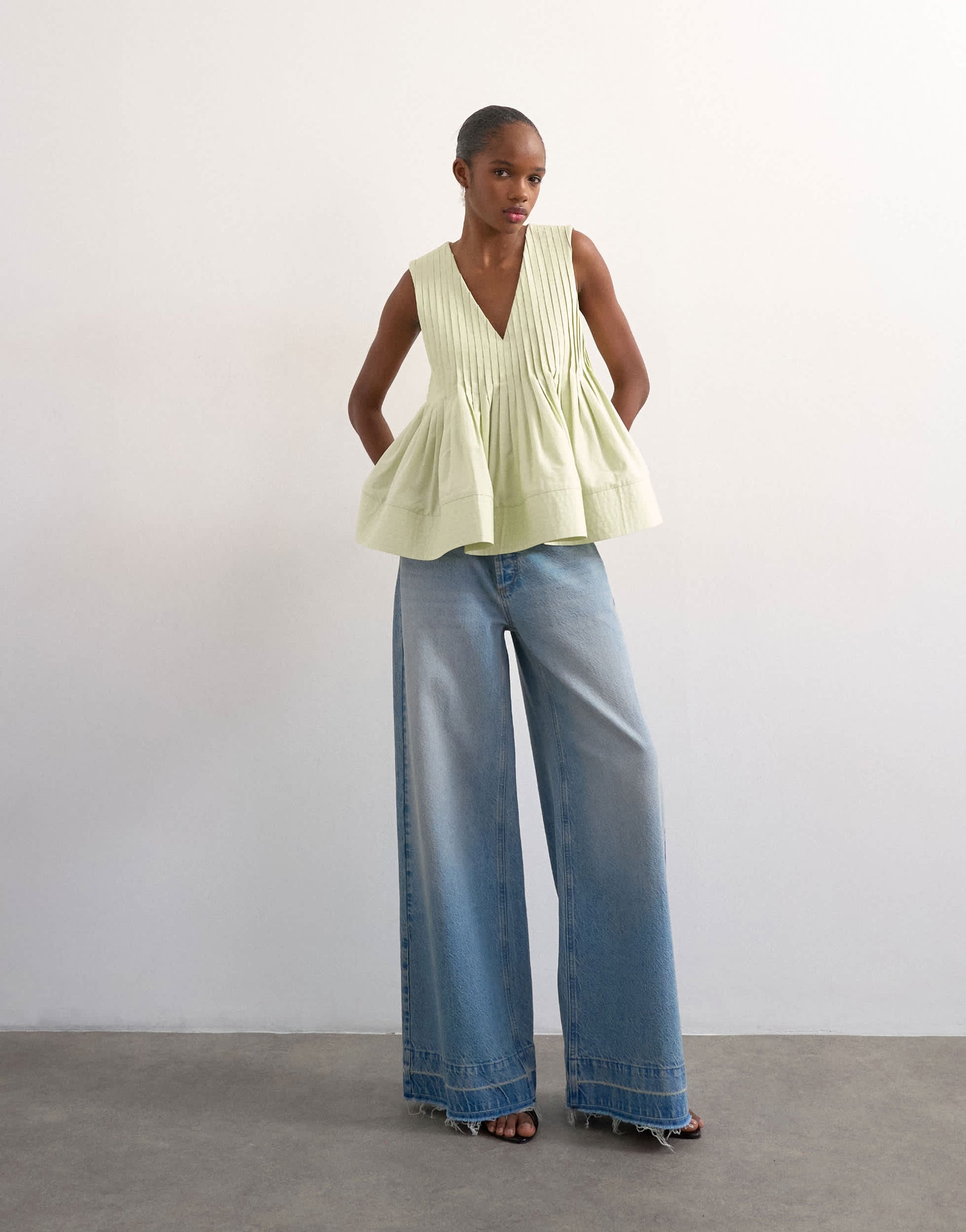 Tops by TopshopThis top is crafted from a woven fabric. It features a V-neck, sleeveless silhouette, pleat details and a regular fit.